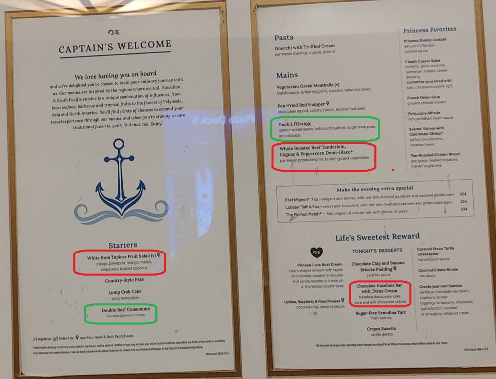 餐单上有船长的欢迎辞(Captain’s Welcome):