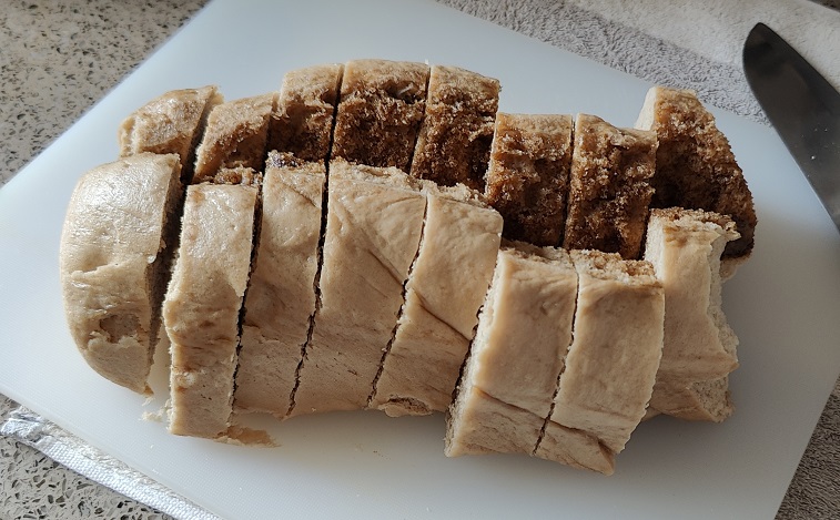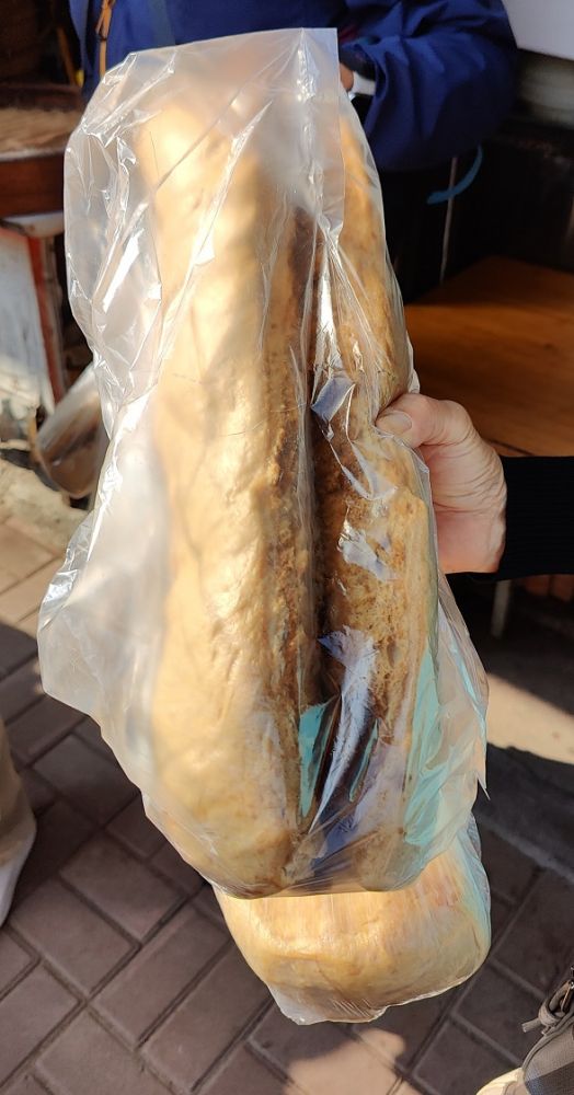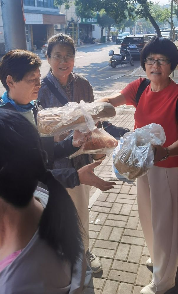 巴士上逸铭指点:“大馒头(发糕)回家分切好。一两天内吃的冰箱冷藏,放更久的冷冻。吃的时候要蒸的热乎乎。”