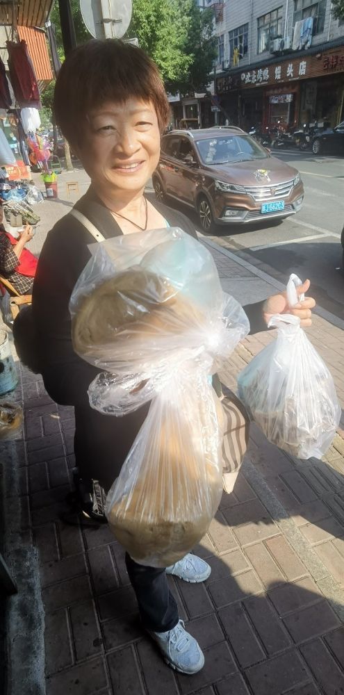 说是买一斤,沙奶奶不断的加料,快2斤了。没有支付宝,现金买单也OK。人民币,谁敢不收?哈哈。