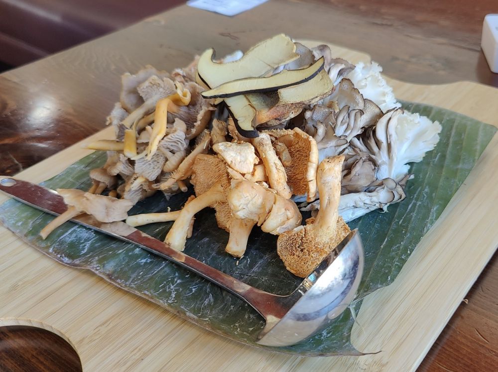 侍者美眉一边逐一介绍野生菌,一边将野生菌放入火锅中:
