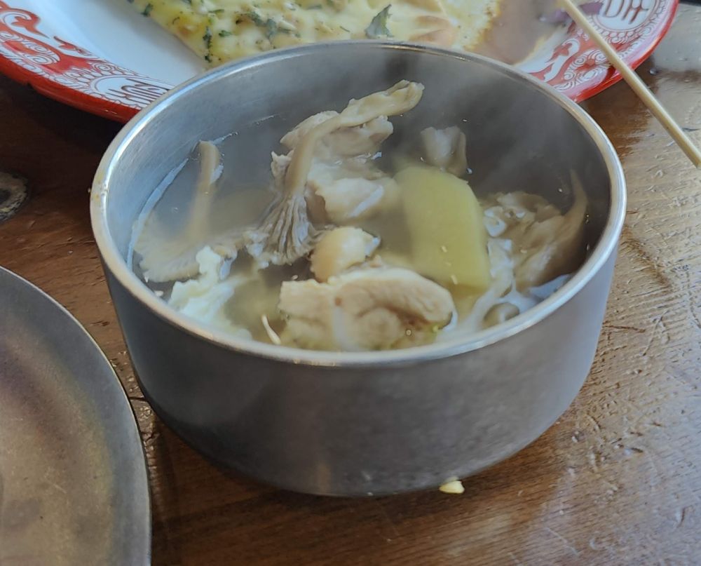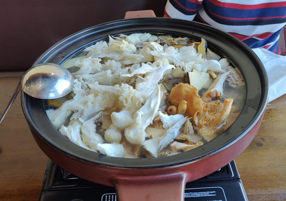 第一批野生菌好了,侍者美眉给我们每人来一碗: