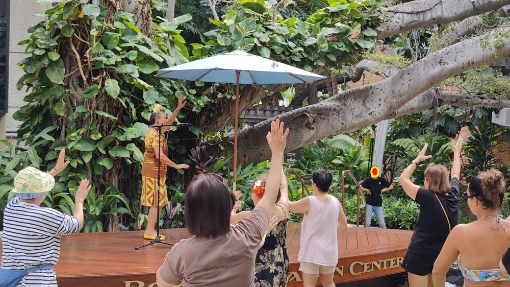 皇家夏威夷前面夏威夷花奶奶在免费传授夏威夷舞: