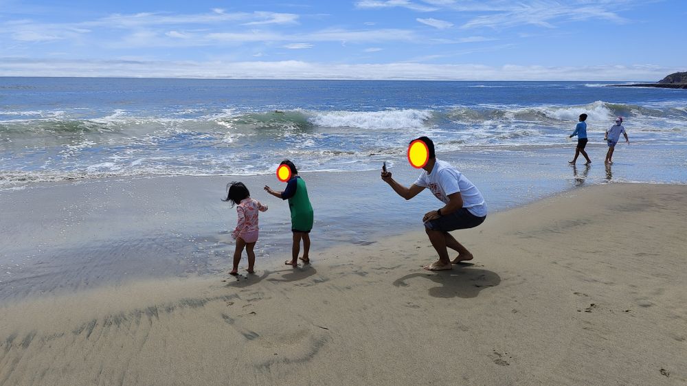 视频拍了两个(此处隐私了),微信朋友圈实况报告。朋友们各种留言,逗趣的逗趣,警示的警示:“这娃太危险了”、“小心!海浪反卷很危险!”。。。