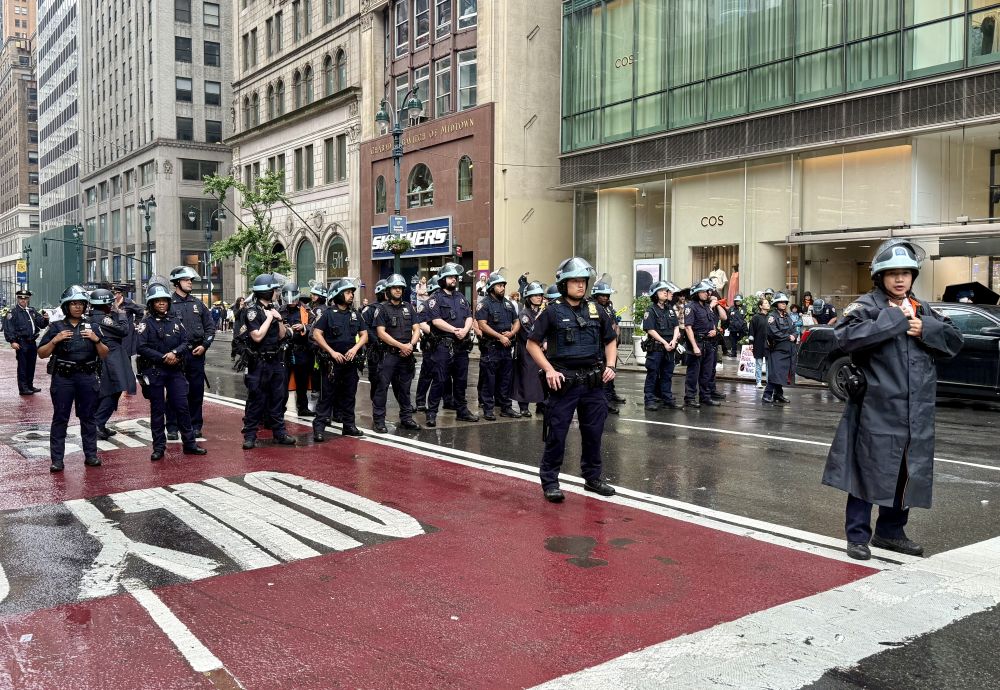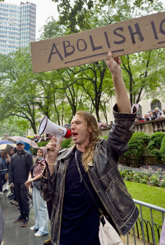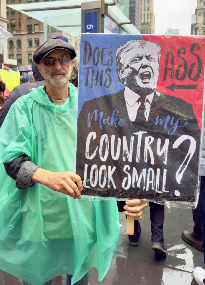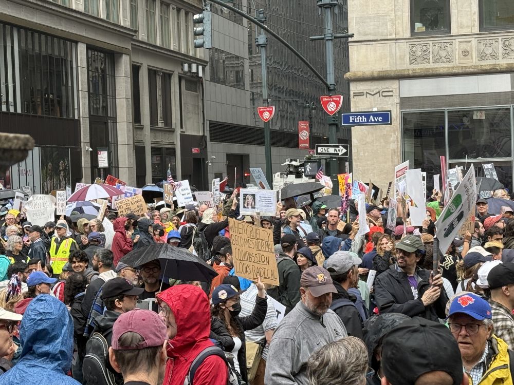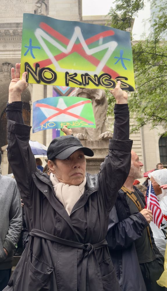 6月14日下午,纽约曼哈顿举行”No King’s Protest” (“无国王抗议”),我正好路过曼哈顿,亲身经历了近十万人参与的这场抗议活动。 几乎所有的参加者都是自发前往,在从长岛到曼哈顿的火车上,每个车厢里都有一些拿着各种抗议标语的乘客。到了中央车站下车,沿街已经是抗议者的海洋。所有的抗议者都自带着各式各样的标语牌,似乎也没有统一的口号和标语。抗议活动的中心在纽约公立图书馆附近,大批警察事先将四周的路口封锁,阻止机动车辆进入,并荷枪实弹地在附近待命。