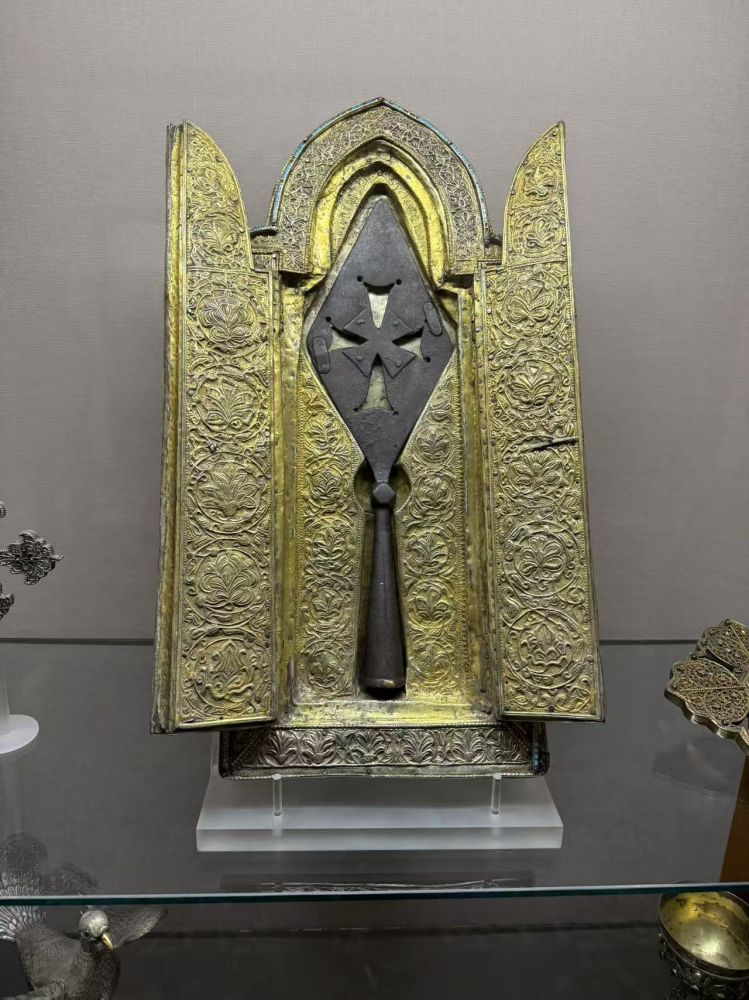 在会说中文的亚美尼亚导游的特意安排下,我们有幸参观 (导游对此的表述是“瞻仰”)了一般只对教徒们开放的埃奇米阿津教堂的珍宝馆。就像世界上所有的著名教堂一样,这里有两件“镇馆之宝”:诺亚方舟的残片(镶嵌在十字架中心的玻璃框内)和耶稣钉上十字架时罗马人刺中耶稣的那支长矛的矛头。作为游客,我当然不愿去评论它们的真实性。任何宗教信仰,首先要“信”,其次再是“仰”;非“信”不足以“仰”。