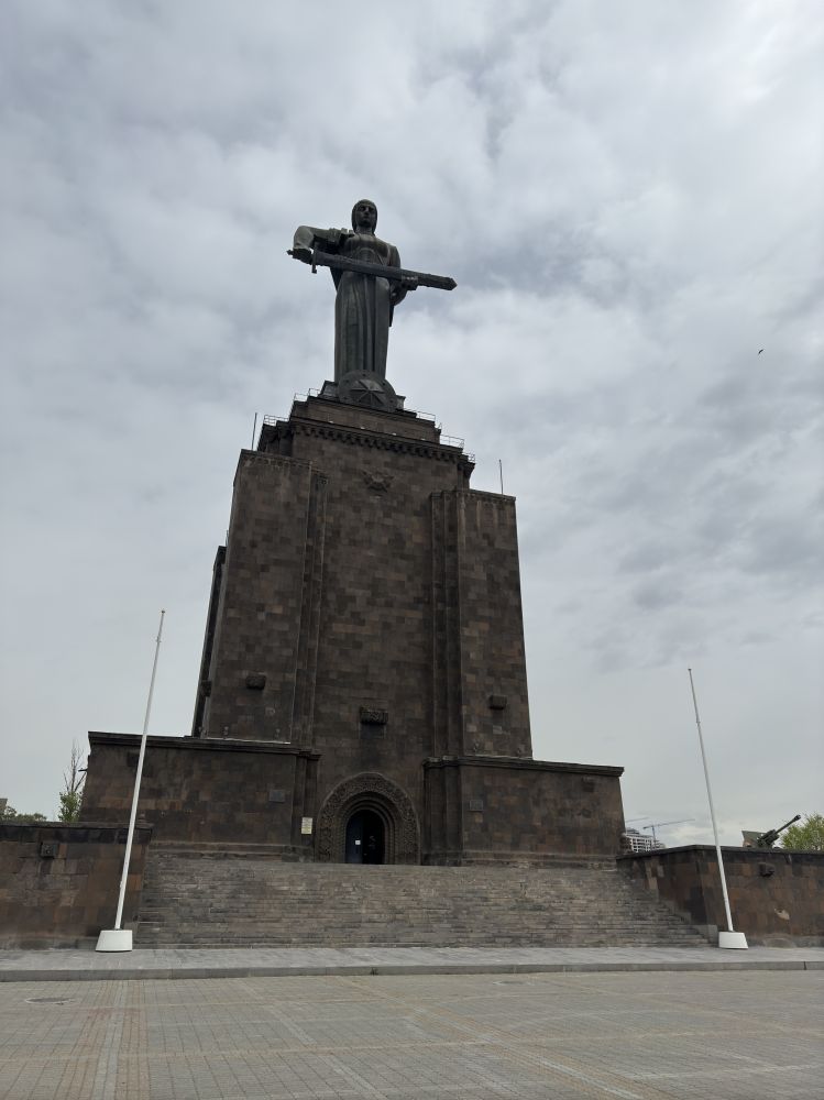 旅行快结束时,我特地去参观“亚美尼亚之母”雕像,包含底座在内有二十多层楼高。一位母亲双手托着一把長劍, 右手握住剑柄而左手托着剑尾,坚强地守护者数千年来饱受苦难和外辱的的亞美尼亞子民们。这座雕像所在位置曾有一座斯大林的雕像,在赫鲁晓夫推动的“非斯大林化”后被拆除,亚美尼亚之母雕像取而代之。如今亚美尼亚民族还有约700万人,除居住在亚美尼亚境内的300万人,其余的流散在世界各地,大部分居住在俄罗斯和美国;共同的民族特征,语言和宗教,将他们世世代代联系在一起,这样的“不死鸟”,怎不令人尊重?离开亚美尼亚前,我在机场买了一个冰箱贴留作纪念,其中的图案就是阿拉拉特山,这就是亚美尼亚人的圣山和民族团结之心,当然值得我尊重。