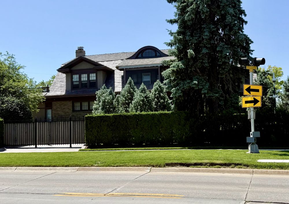 到了奥马哈的第一站就是去巴菲特的家周围看看。 他的家在奥马哈市区的一条主要马路边,往来的车流不断,从他的邻居的房子可以看出这是个中上阶层的社区。 他的家是一个灰色的两层建筑,处于十字路口,两个大门都装上了铁门,院子用铁栅栏围了起来,院子的四周和街道上都安装了监控摄像头。虽然这里绝对是个“打卡景点”,但看不到保安人员在附近“执勤“,当然他们通过摄像头在保卫这位超级富豪。