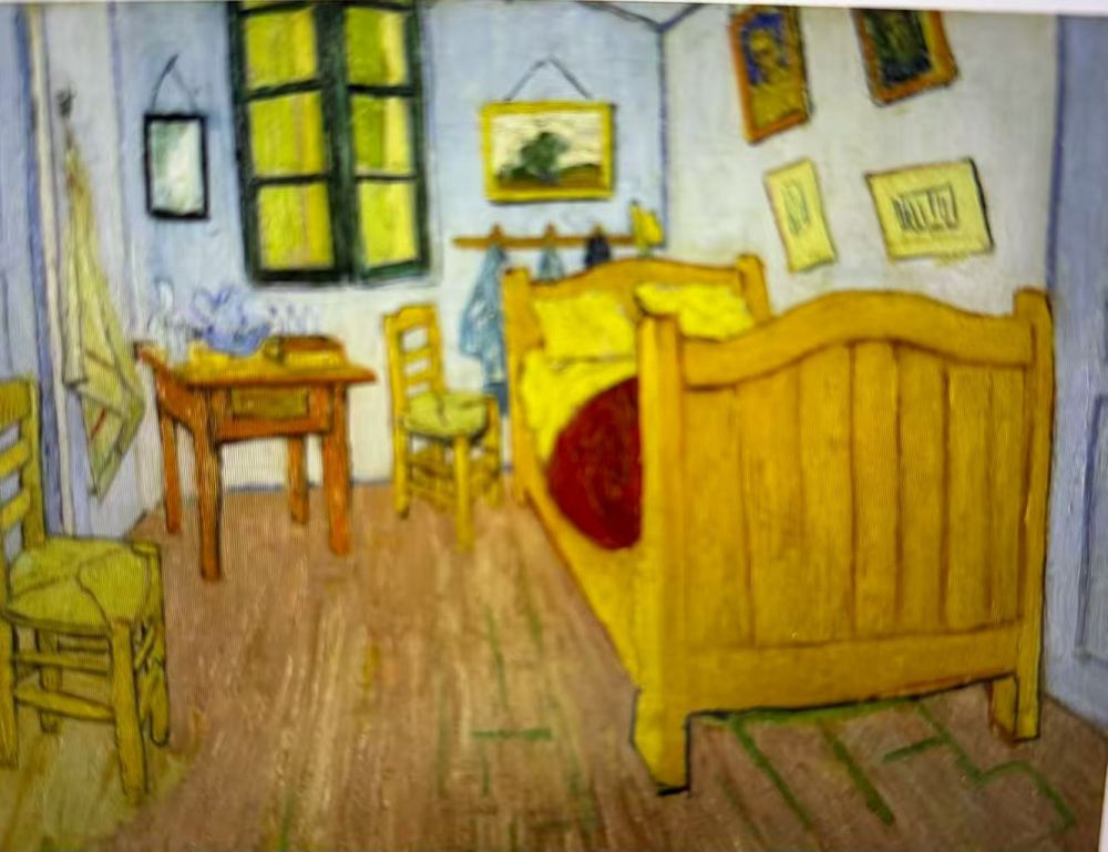芝加哥艺术学院博物馆,馆藏总数超过50万件,时间跨度超过五千年,与纽约大都会博物馆和华盛顿的国家画廊并称为美国三大博物馆,该馆以收藏欧洲印象派的绘画作品见长。我一进博物馆就直奔主题,去观赏梵高的《卧室》。可惜该画作被借展去了,附上《卧室》的照片,梵高总共画了三幅卧室,这是其中之一: