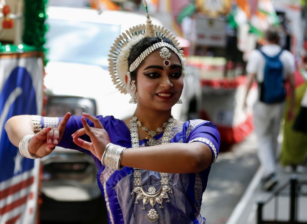 由于在纽约的族群种类太多,需要庆祝的节日自然也多,纽约市政府根据参与人数多少,安排不同的街道供他们庆祝游行。像波多黎各等人数众多的游行,被安排在第五大道;类似印度和巴基斯坦等“中等规模”的游行,被安排在麦迪逊大街;人数较少的类似哥伦比亚等游行,则被安排在布鲁克林等非中心区域。 每次去拍摄庆祝游行,眼中看到的满街都是外国的国旗,似乎忘记了这里是美国。 警察在游行区域内设置警戒线,防止发生过激行为。 由不同种族在每个周末举行的庆祝活动,成了纽约的日常景观,当然也成为我这个摄影爱好者的“天堂”。印度独立日的庆祝游行,参加者大都盛装出席,他们要显示的是民族存在感和自豪感。
