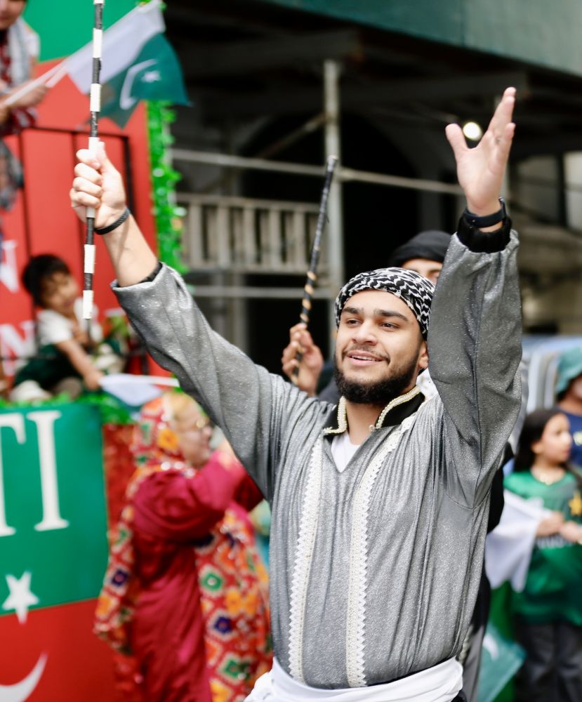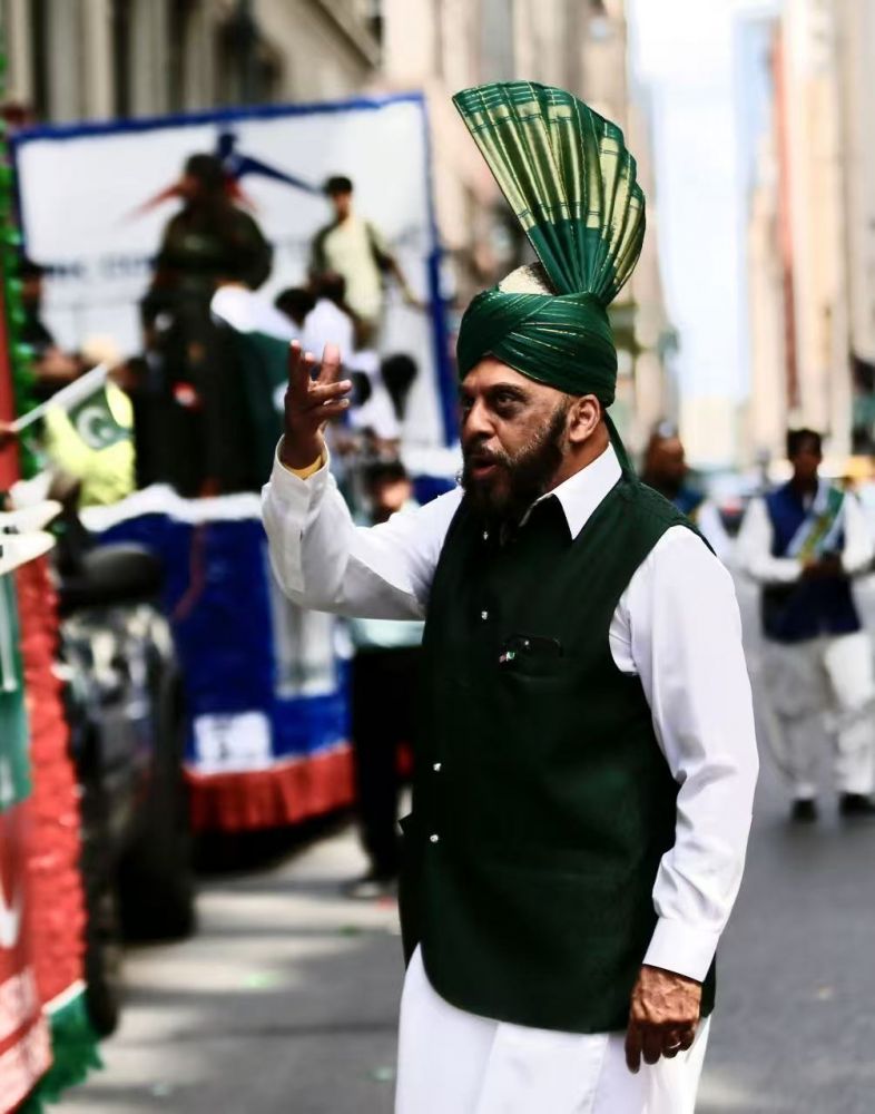 但实际场景令我失望, 巴基斯坦独立日的庆祝游行显得冷冷清清,参加的人数看上去不超过三百人,只有一两个表演团队;而前一周印度裔的游行人数至少有上万人,各种表演团队至少有二三十个。 又由于族群人数太少,能提供的选票也少,没有任何当地政客参与游行;倒是纽约市的警察乐队一如既往地为每一个族群的游行开道,这次也不例外。在服饰上,印度裔是五彩缤纷,以红色为主;而巴基斯坦裔则以绿色为主,略显单调。 我总的感觉是,印度裔的游行是在显示民族自豪感,而巴基斯坦裔的游行似乎只在刷存在感。 但无论如何,在纽约这个多民族共存地区,作为少数族裔,存在感还是必须显示的。