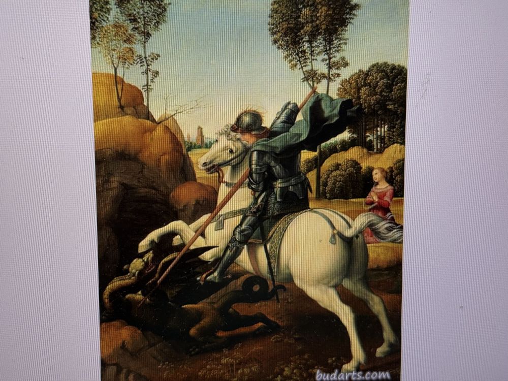 《圣乔治大战恶龙》(Saint George and the Dragon), 这幅画描绘了圣乔治英勇地与恶龙搏斗的场景,是拉斐尔早期作品的代表作之一。 但我在现场没有看到这幅作品,应该是在内部维护或者借出去巡展了。以下是从网上下载的照片,并非我从现场拍摄。