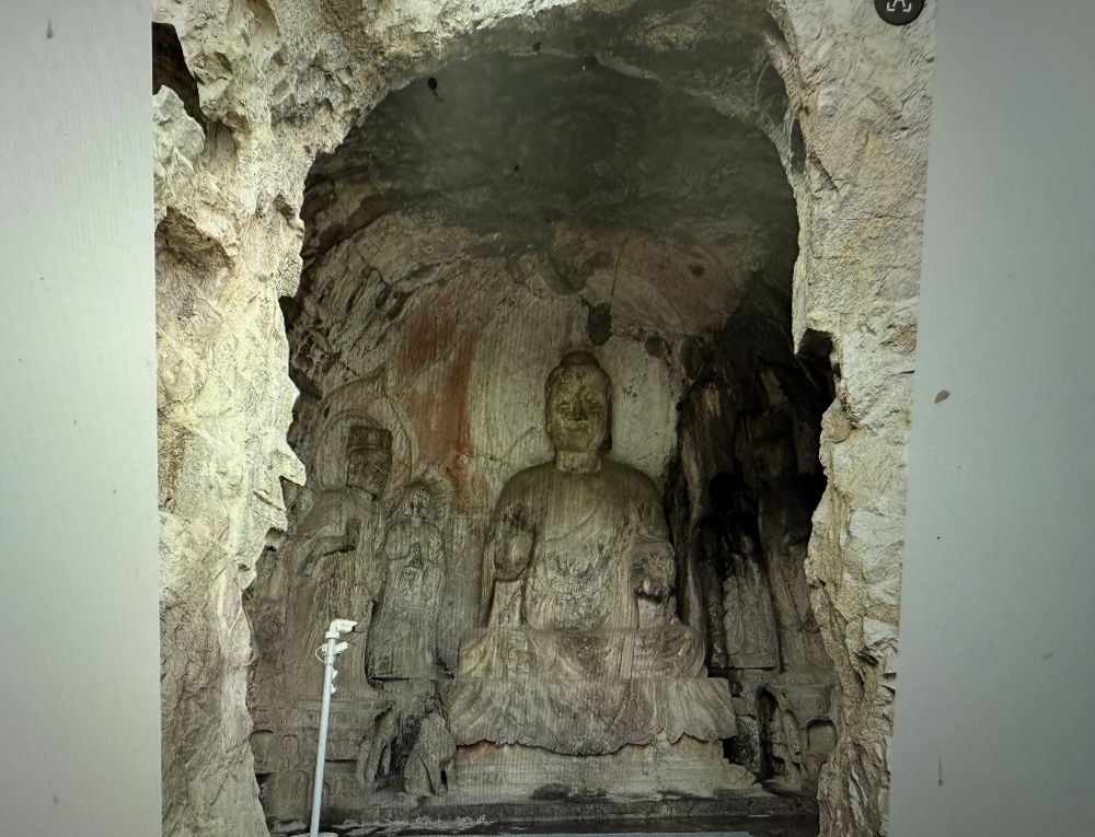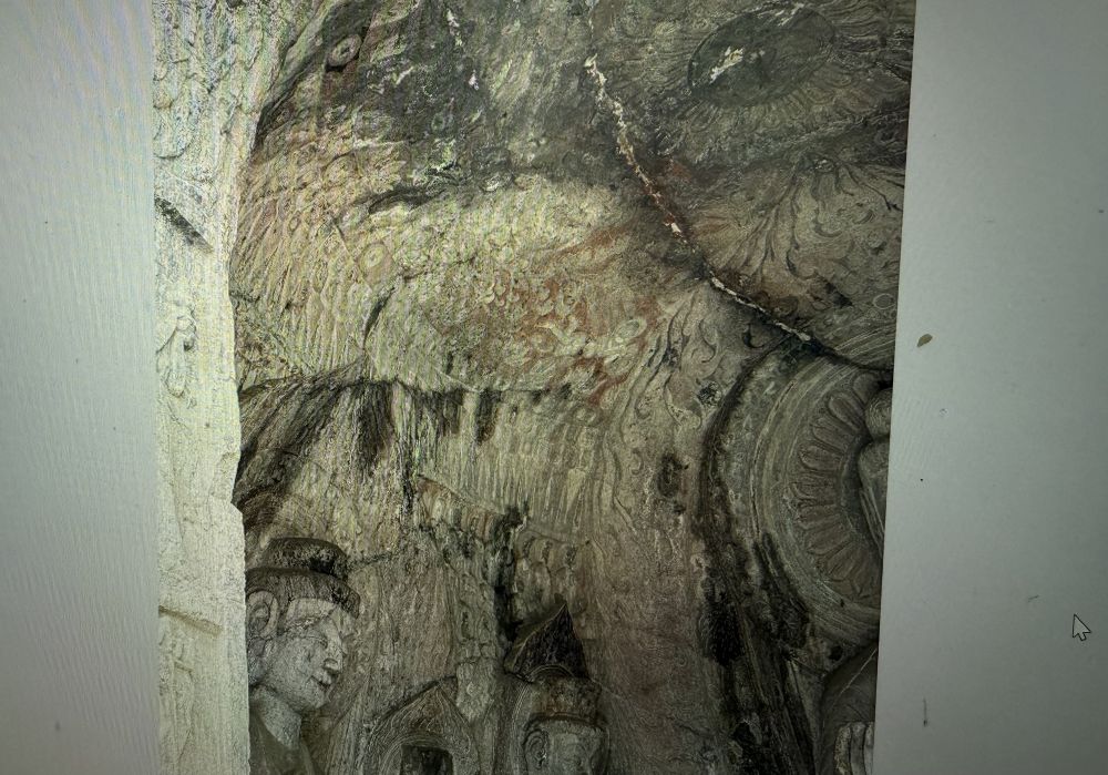 在我身旁的参观者人群不断更替,游客们拍拍照、点点头、继续前行。我则站在石雕前十多分钟几乎没有挪动。我从正面和侧面仔细看了雕刻——那是石面被生生从洞窟墙体切割下来的断口,粗糙而突兀。这里的每一位观众都在欣赏“艺术”, 但我越看则越感到胸口的钝痛,扪心自问一个简单的问题:如果它仍然在龙门石窟,我不可能这样站在它面前,我不可能这样以游客的距离观看它,我不可能以“世界艺术”的角度理解它。这可绝不是一件单纯的“艺术品“,那是伤口,真正的震撼不是艺术,而是它“为何在这里”。