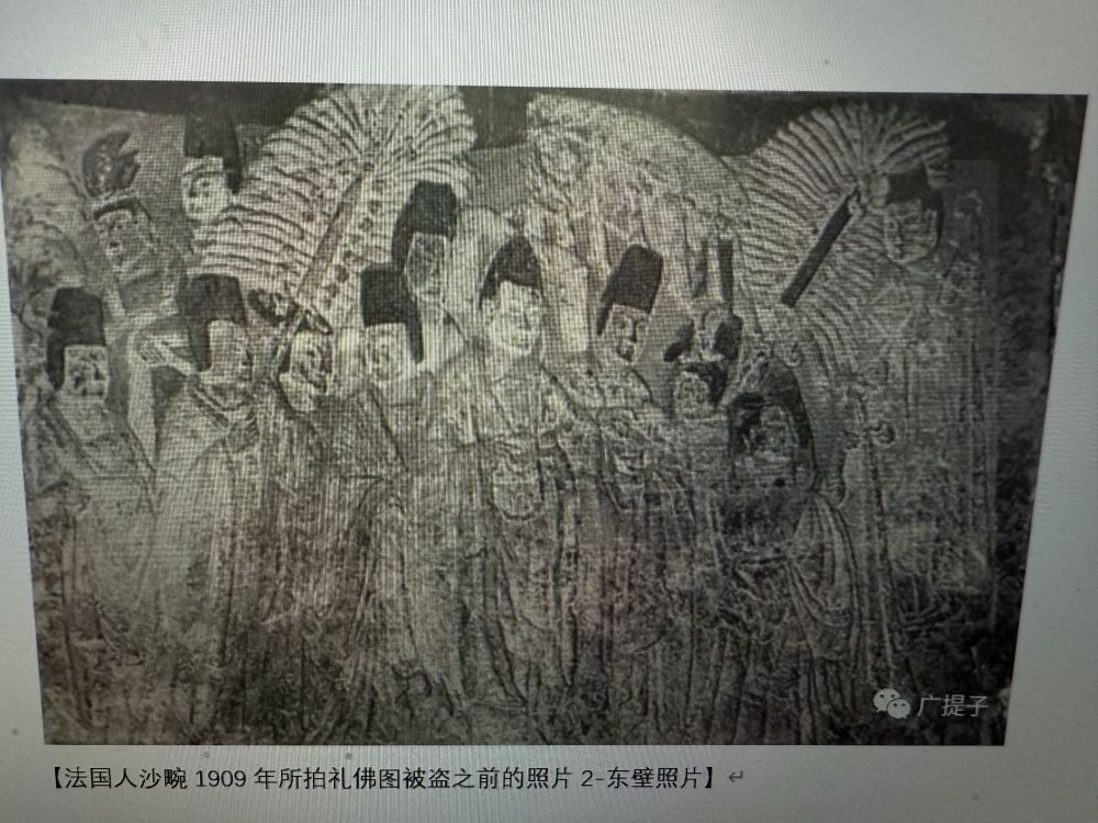 令人扼腕叹息的是,如此精美绝伦的石刻雕像,在宾阳洞中保存了一千五百年之后,竟然在二十世纪初被盗。我从网上下载了1910年左右拍摄的照片,显示了这两幅石刻当年的景象。