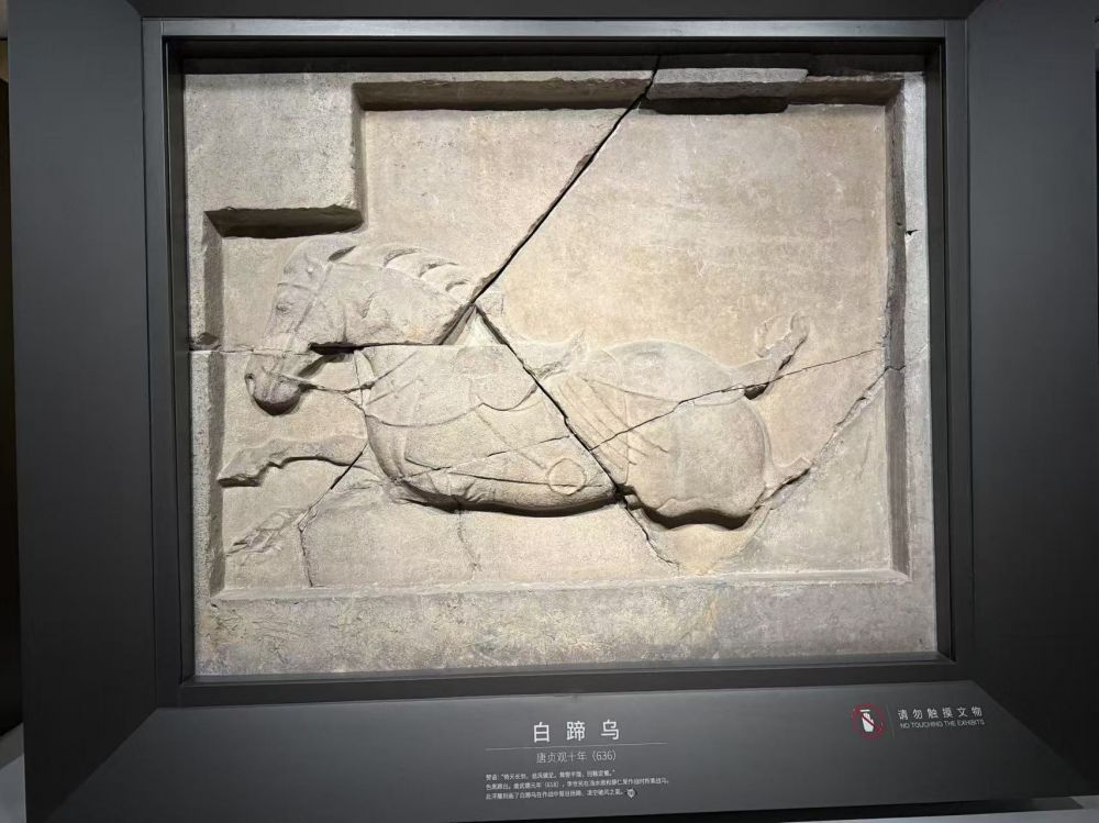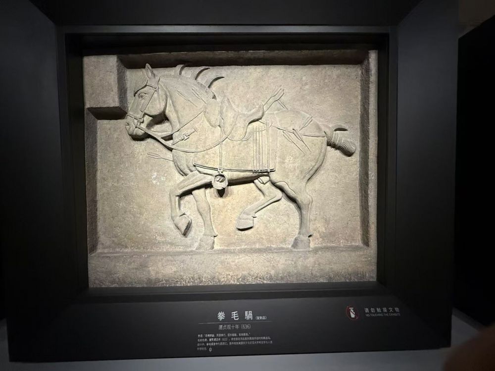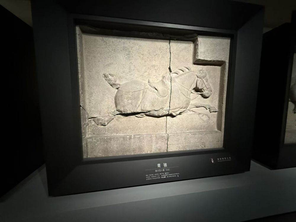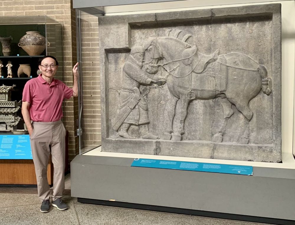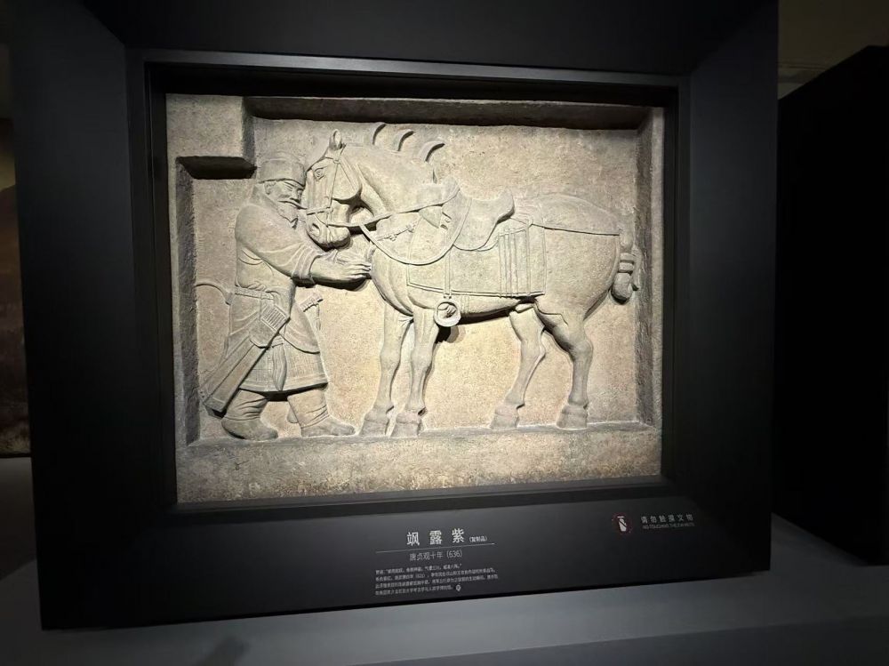 美国各博物馆里收藏的中国文物不计其数,其中最著名和影响最大的文物莫过于“昭陵六骏”中两座骏马的浮雕碑。唐太宗李世民的昭陵是唐朝所有皇帝陵墓中规模最大,陪葬墓也最多; 它的祭坛东西两侧的六块骏马青石浮雕石刻,是李世民在建立唐朝和统一全国的过程中所乘过的六匹战马。为表彰自己的战功和追念这六匹良驹,李世民诏令绘画大家阎立本把六匹骏马描绘成形,由建筑名家阎立德法镌刻而成。李世民亲自为这六匹骏马命名为白蹄乌、拳毛騧、飒露紫、特勒骠、青骓和什伐赤, 并为每匹马撰写了赞美诗,如他为 “白蹄乌” 题的赞语是 “倚天长剑,追风骏足。耸辔平陇,回鞍定蜀”;为 “特勤骠” 题的赞语是 “应策腾空,承声半汉。入险摧敌,乘危济难”;为 “飒露紫” 题的赞语是 “紫燕超跃,骨腾神骏。气三讋川,威凌八阵” 等。六骏石刻采用 “高浮雕” 技法,线条流畅,比例精准,既还原了战马的真实形态,又融入了唐代艺术的雄浑气势,是中国古代石刻艺术的巅峰之作。