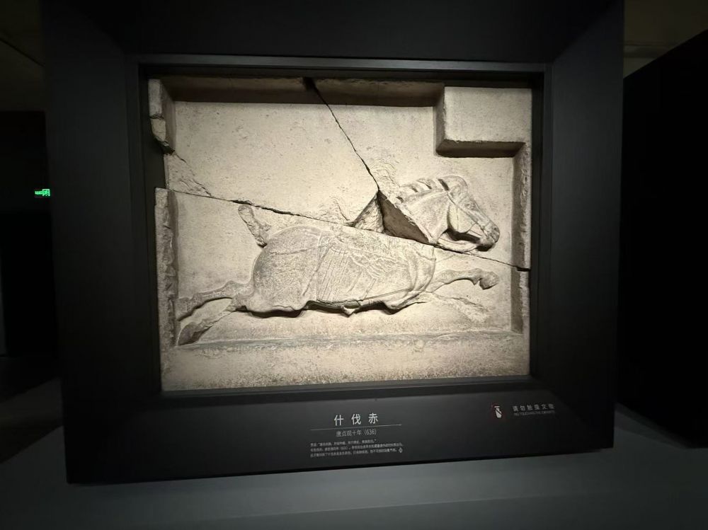 其中可以明显地看出,“飒露紫” 和 “拳毛?”是复制品;另外四座白蹄乌、特勒骠、青骓和什伐赤则是原件,它们每一个都被砸碎过,我们看到的是拼接而成的。从唐太宗在公元649年去世至今已有一千三百多年,这六座石刻碑历经风风雨雨,如今终于有了安身之地,可供世人在今后千年瞻仰。