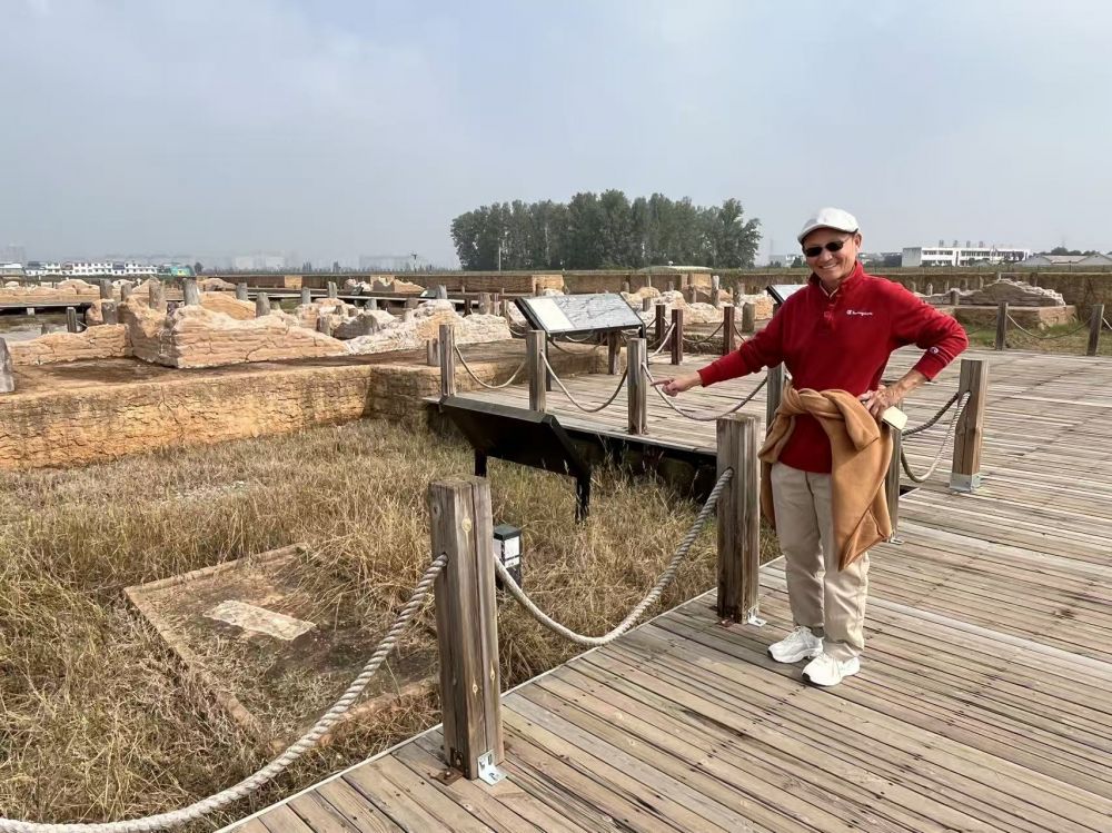 参观完博物馆,我和老友特地到遗址现场去观了看当年的出土位置。在一大片的田野中,要发现这条“中华第一龙“,既需要考古的知识和经验,当然也需要一些运气, 由此我还特地请老友在发掘现场为我拍照留念。