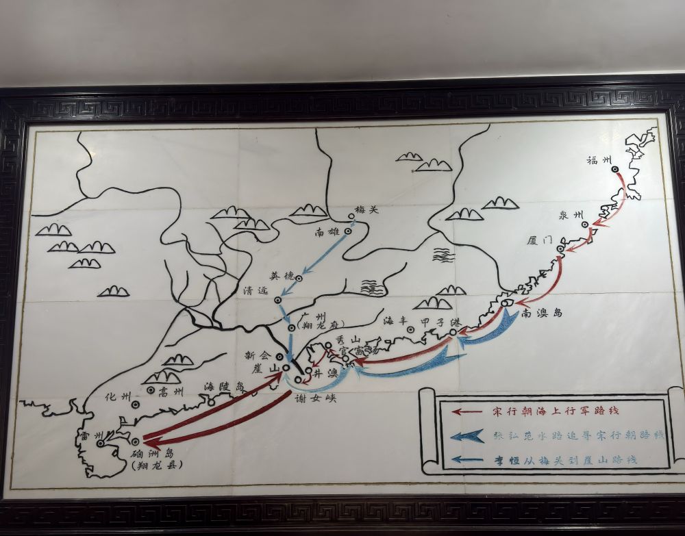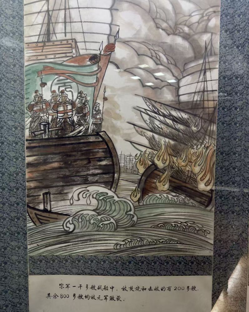 公元1271年,蒙古族的忽必烈在大都(今北京)建立元朝后,随即发动对南宋政权的战争。1276 年,元军攻占南宋都城临安(今杭州),俘虏了年仅 5 岁的宋恭帝。但南宋残余势力在文天祥、陆秀夫、张世杰等人的拥立和辅佐下,先后拥立益王赵昰(宋端宗)和赵昺(宋卫王)为帝,在东南沿海坚持抗元。 随着元军的步步紧逼,南宋流亡朝廷一路南逃至泉州、潮州、惠州等地,最终退至广东南部的崖山地区。当年这里已是天涯海角,南宋朝廷被逼的无路可退。1279 年初,南宋约 20 万军民(包括文臣武将、士兵及大量随逃的百姓)烧毁了岸上的行宫和房屋,登上千余艘战船,用绳索连成一片,将小皇帝赵昺的 “龙舟” 置于阵中,决心在此与元军决一死战。