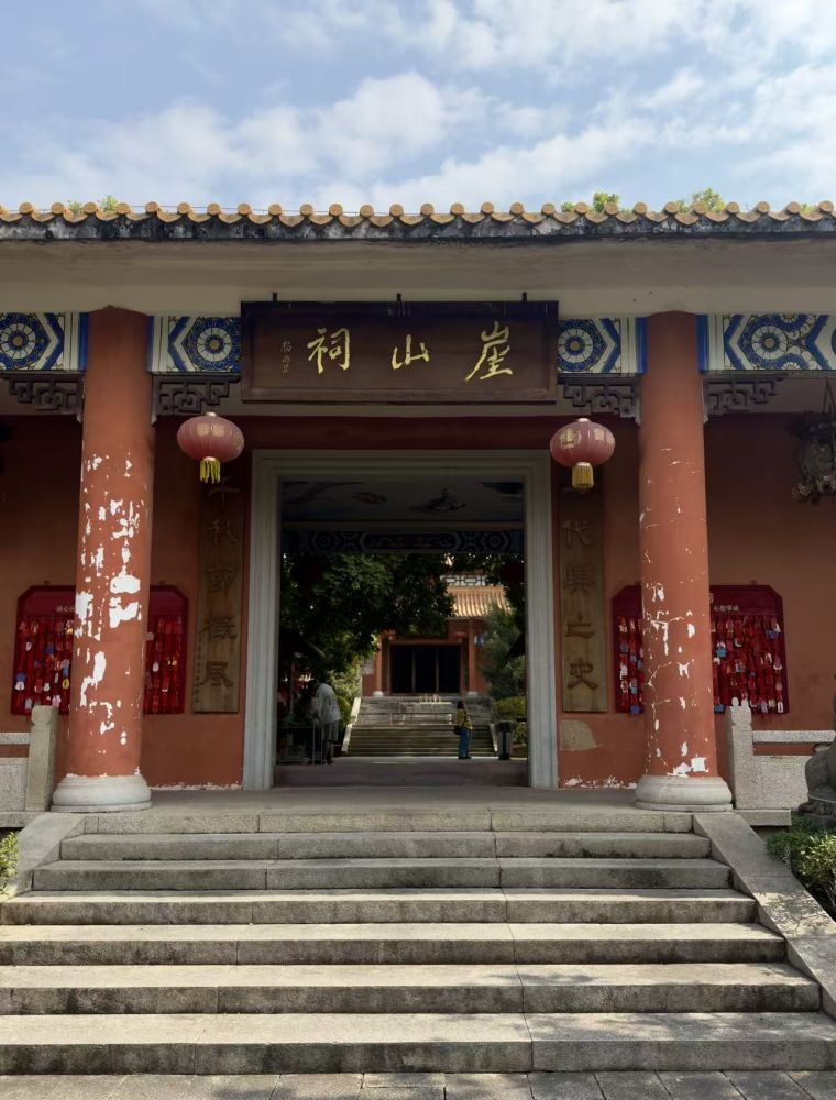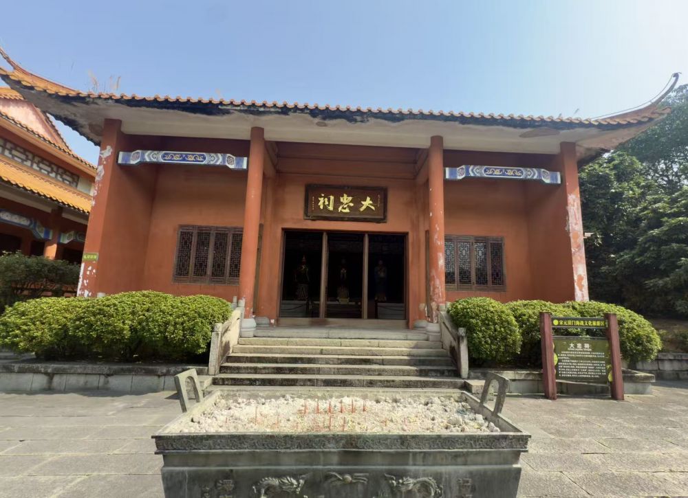 走出战史陈列馆,迎面就是三忠祠,祠堂前侧配建了正气亭。明成化年间(1649年)建造,祭祀文天祥、陆秀夫、张世杰三人。这是崖门海战文化的重要载体,象征着民族气节,承载着后人对这三位的敬仰和推崇。