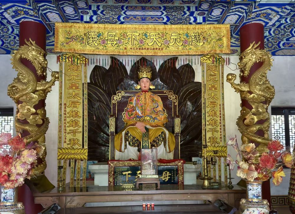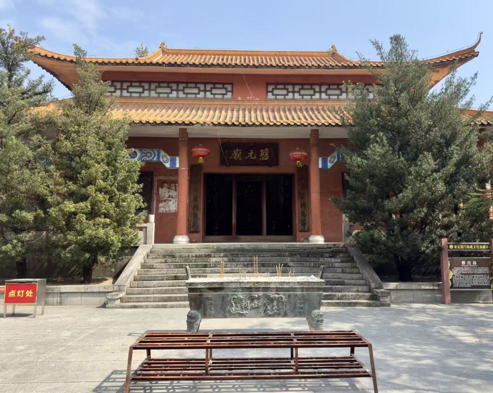 慈元庙俗称 “国母殿”,是为纪念在崖山投海的杨太后而建。这是宫殿式构筑,朱墙、黄琉璃瓦、歇山顶,富丽堂皇;殿前为花圃院居,左右两侧为碑画廊,门厅左侧有明清遗存古碑陈列厅。 庙内供奉杨太后与少帝赵昺塑像和他们的生平事迹。