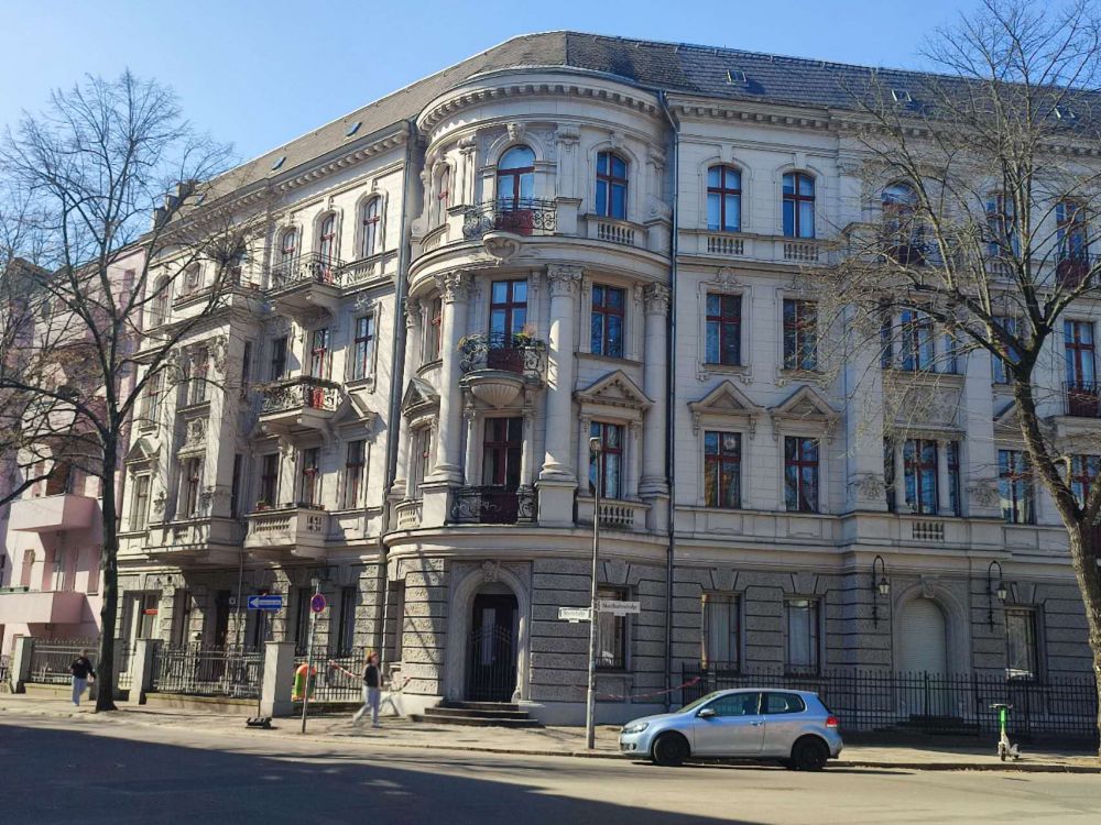 这附近过去是民主德国,东柏林的门面,大领导们都住这儿,所以底子不差。跟其他地方不一样——那些地方很多那种一排排的板楼,横平竖直,像用尺子画出来的,看着就有点冷。这儿呢,倒还讲究点儿,街面儿也显得有点历史沧桑感。