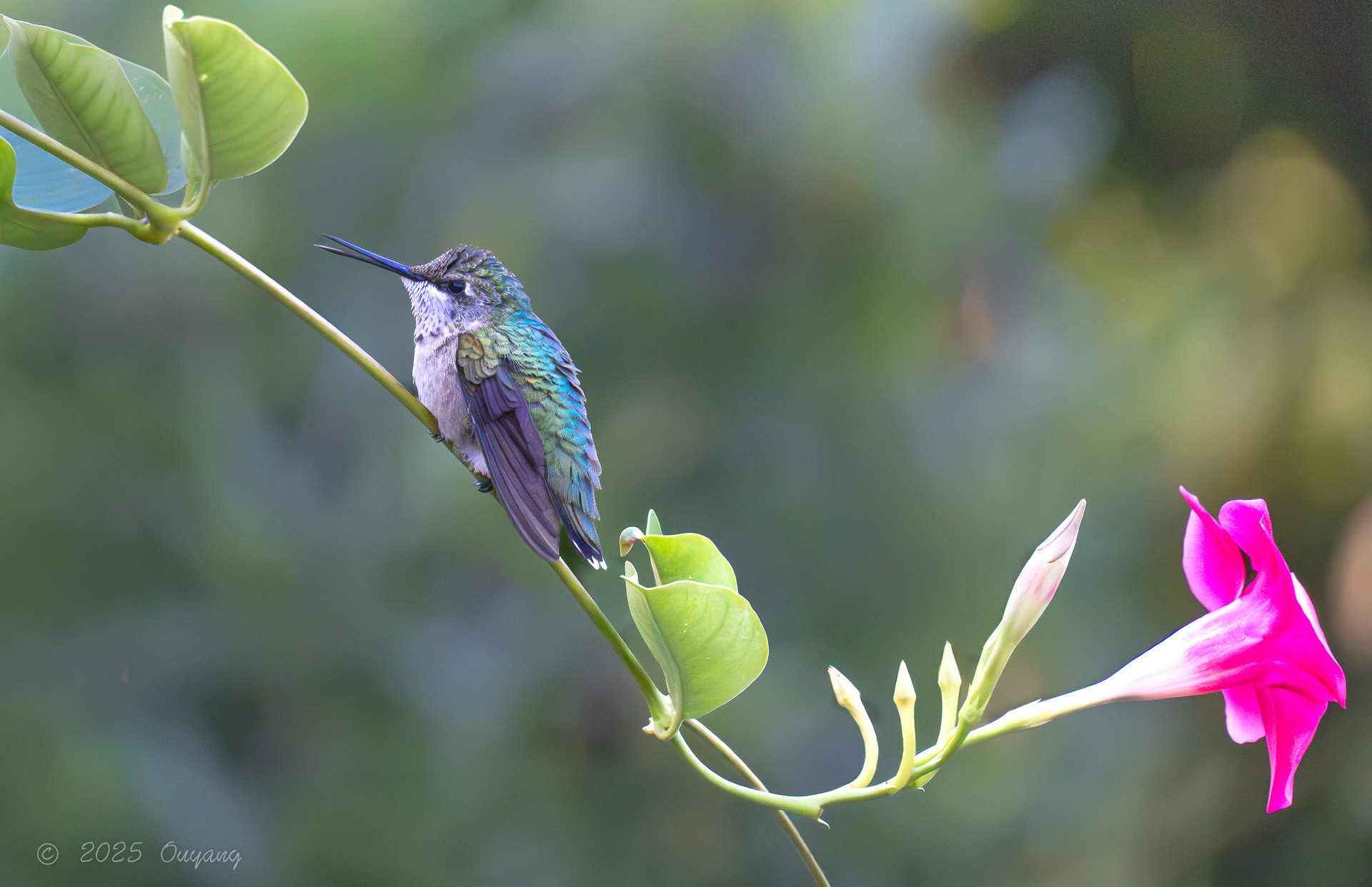 虽然没有雄鸟那么出众,雌性的红喉蜂鸟仍然是闪闪发光的漂亮小精灵。