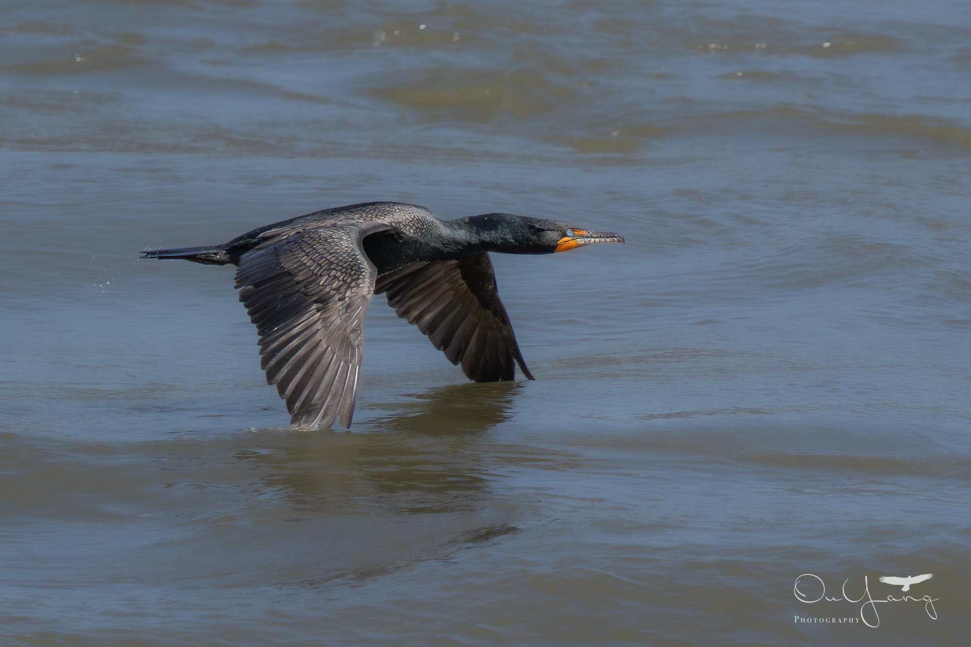 1. 贴着水面飞行的鸬鹚 (Double-crested Cormorant)