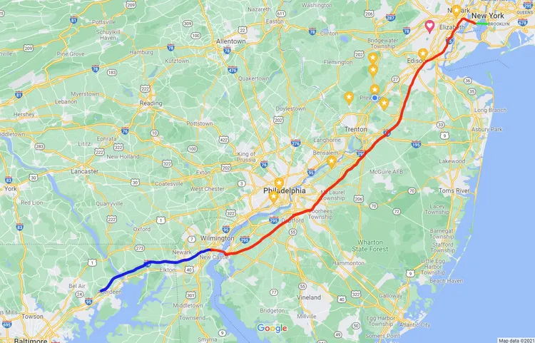 或者是从纽约布鲁克林横渡哈德逊湾最宽处到新泽西,然后骑行穿越整个新泽西到特拉华州首府威明顿,最后跑步到马里兰州巴尔的摩市北郊。