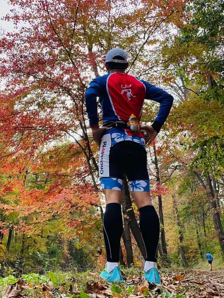 11月7日周日,游泳5000码,配速2:09。在晚秋的缤纷红叶中完成了大铁训练最后一周peak week的最后一项,3小时18英里长跑, 配速9:35。