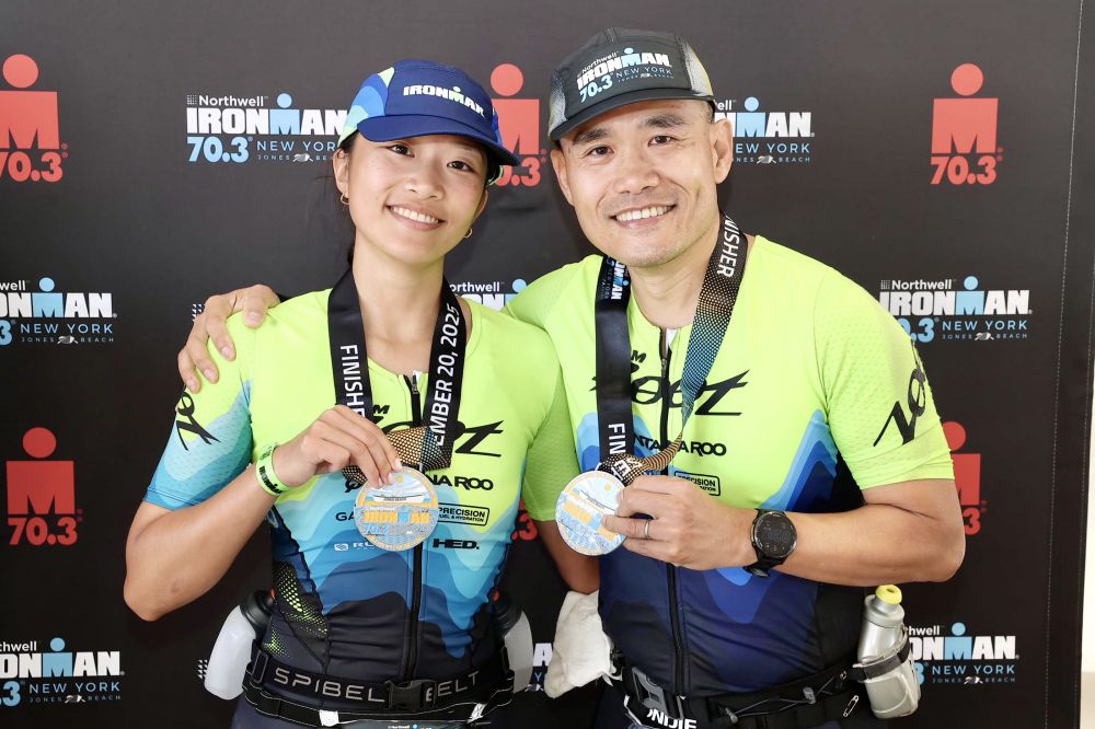 9 月 20 日,Michelle 在 Ironman 70.3 New York Jones Beach 完成了人生第一场铁三比赛。去年她在这里做志愿者,把奖牌挂在我脖子上,并报名参加今年的比赛。一年后,她自己参赛,如她所愿让我给她挂上奖牌。然而,这看似顺理成章的一切,比我们当初想象的要艰难得多。