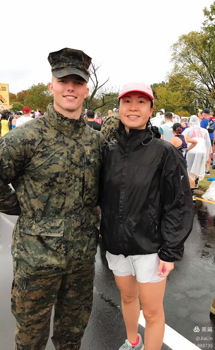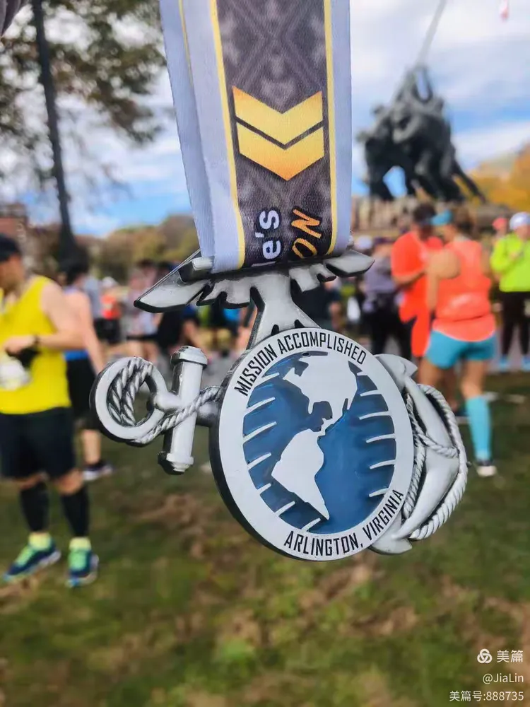 2019年,我因为迷上了首都华盛顿举办的海军陆战队马拉松(Marine Corp Marathon, 简称MCM)的完赛奖牌,决定选择这场比赛冲击BQ。MCM被称为“人民的马拉松”,参赛规模三万人,沿途水站义工都由海军陆战队士兵担任,Run With Marine是比赛的卖点,吸引了很多跑者。当时我只跑过一次全马,尚处于跑马小白的水平,经验不够丰富。又因为各种原因,起先一起报名参赛的队友们都无法参加,我成了唯一的本队参赛者。周六到达首都入住旅馆,天气阴阴的,已经听说第二天会下大雨,而且仿佛存心和我们过不去,就早晨开赛后下雨有Storm,下午就晴了。