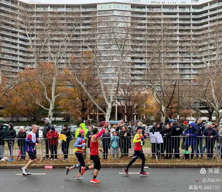 20英里折返,几乎没力气保持速度。只能靠队友控制而不至于掉速太多。此时看到另一个方向出现越来越多的熟悉面孔,小伙伴们在对我喊加油,我只能无力地挥手示意。此时遇到我们队里几乎是最强的两位大神老李和老黄,他们一左一右带领我这个没用的跑渣前行。我其实已接近撞墙的边缘,胶都吃了,虽然呼吸非常顺畅,但两腿异常沉重好像已经抬不起来。老李挥舞着一只手套,大声给我加油,老黄也鼓励我最后几迈了,坚持就能BQ。我越跑越累,脑子也迟钝了。那时碰到了又一位队里的朋友M,艰苦拼搏的她毕竟还有力气对我说“JiaLin加油!” 而我动了动嘴唇,却无力挤出一句“你也加油”,只能面无表情地从她身边越过,跟着老李老黄继续向前。心里好笑,这个面无表情、对人爱理不理的家伙是我?我可从来没这么酷过,对M充满了抱歉。