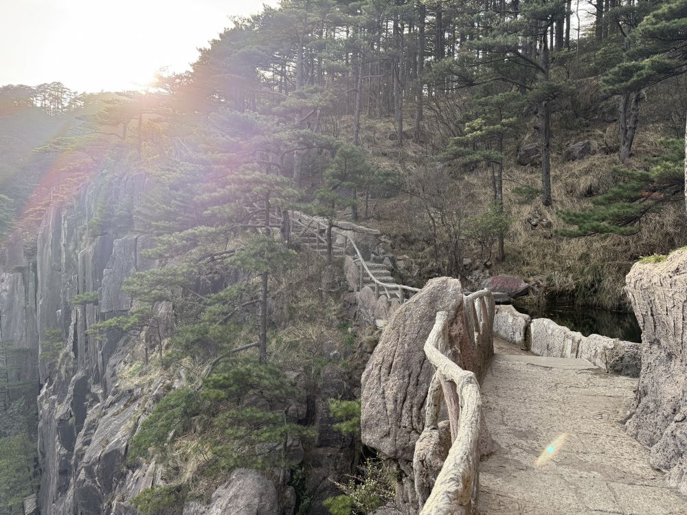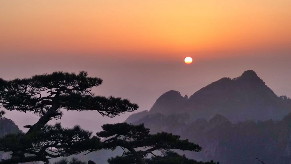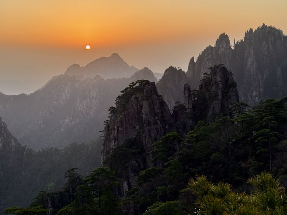 清晨在清凉台上看日出: 清凉台是黄山最著名的观日出和观景平台之一,东面无遮拦,正对东方天际,晨曦初现时,红日从群山之间喷薄而出,气势壮观。