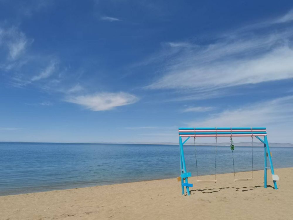 在湖边,吊环和秋千轻轻摇曳,似乎在邀请每一位游客放松身心,享受高原的自在与快乐。