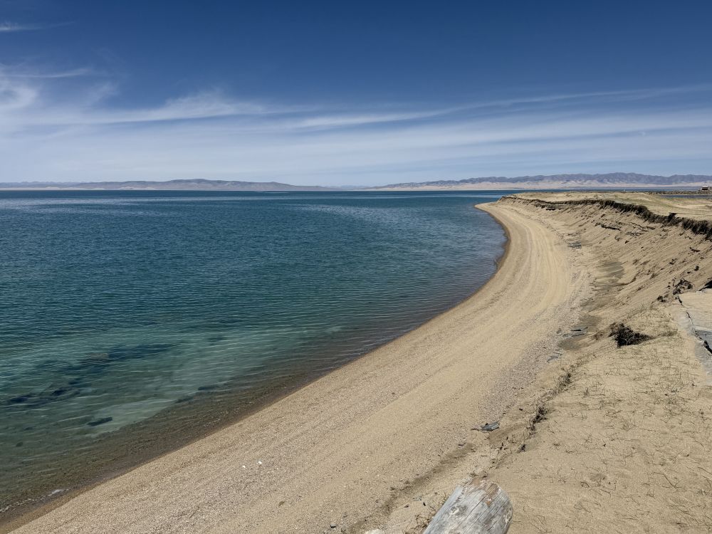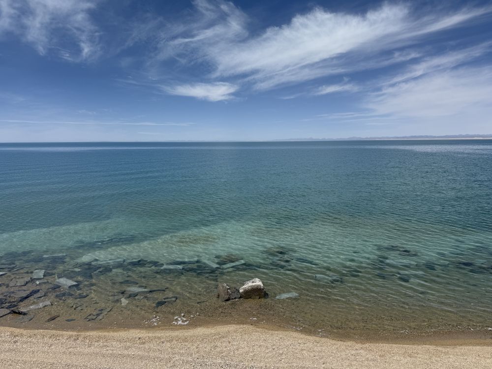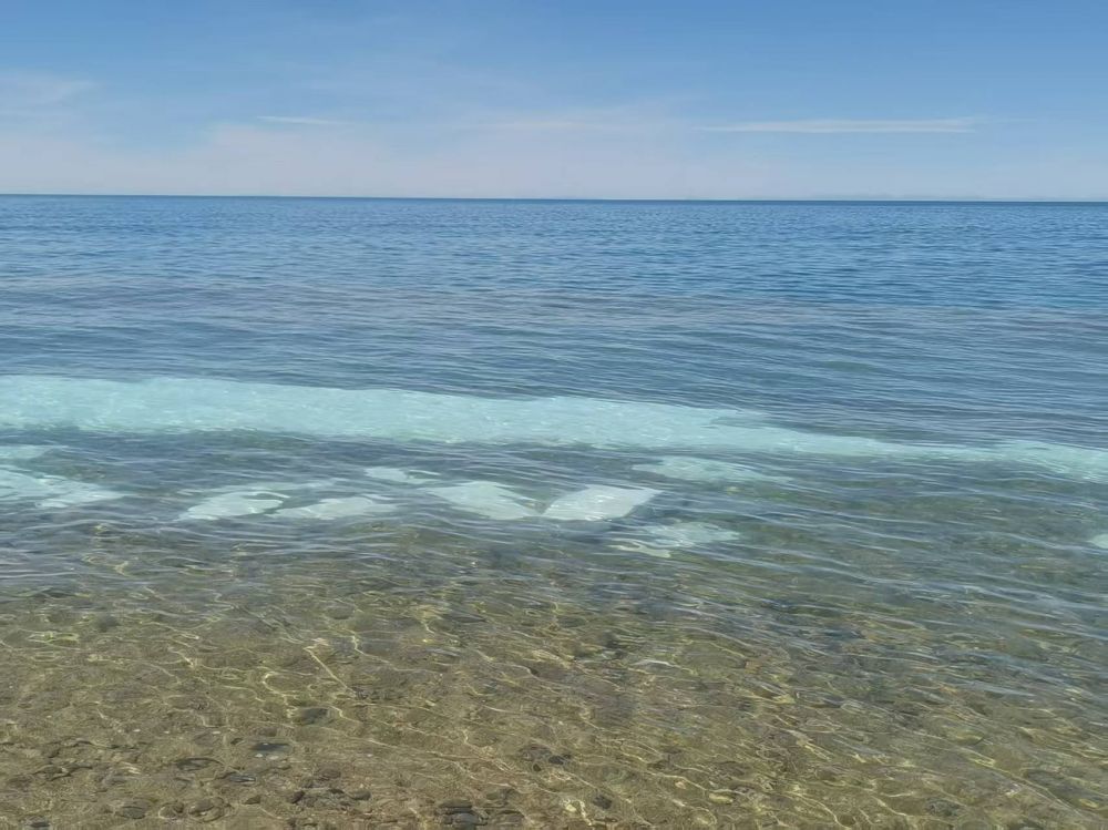 走近湖边,沙滩细软,水波轻拍岸边。湖畔的风很清爽,带着高原特有的干净气息。微风拂面,湖水轻漾,宁静中透出一种震撼心灵的壮美。