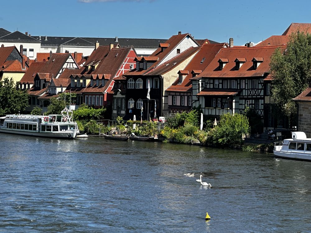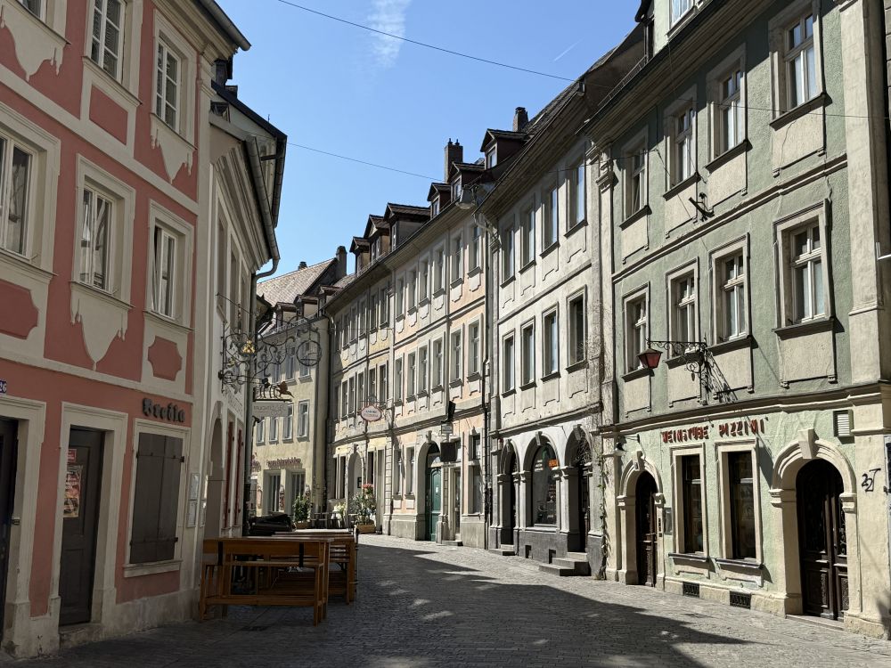 1. 班贝格(Bamberg)位于德国巴伐利亚州北部,是一座拥有千年历史的古城。全城依山傍水,坐落于雷格尼茨河(Regnitz)两岸,七座小山环绕,因此又被称为“七丘之城”。城市中保存着大量中世纪与巴洛克时期的建筑群,风貌完整而和谐,其老城区已被列入联合国教科文组织的世界文化遗产名录。