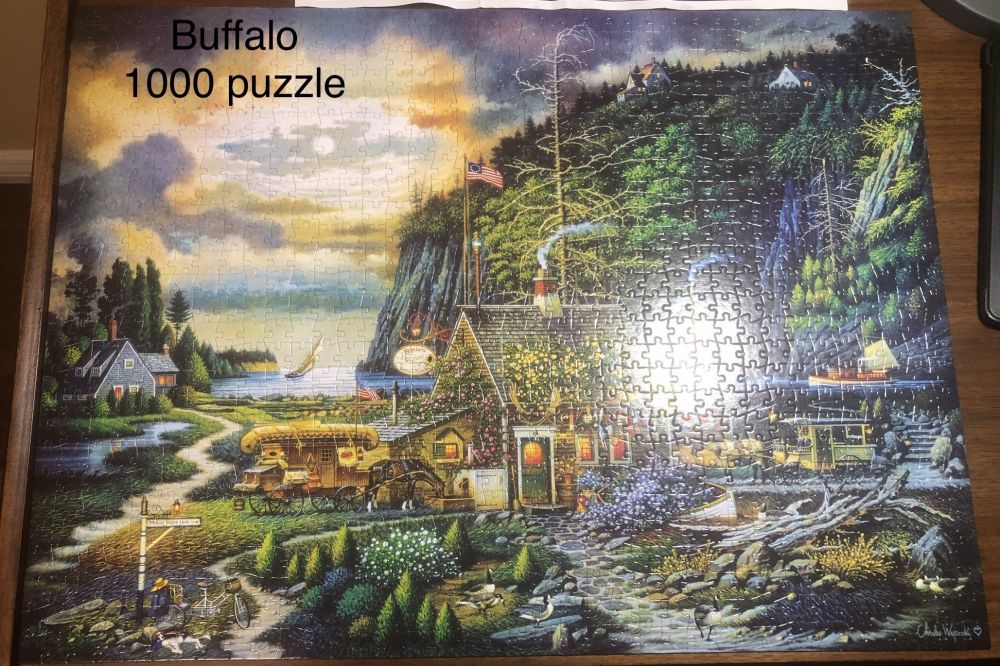 十几年前看我妈拼图,对那些形状各异颜色相近的图块,没什么兴趣。这几年,想着可以试试,看看是否喜欢拼图。于是,就先买了一个350块BitsandPieces的拼图,价格便宜。我妈说要先把四周拼好,再拼里面。新手经过指导,上手果然就快些。我拼了一些,感觉还挺喜欢的。就接着买了五盒500块BitsandPieces的拼图,其中的四盒是在一套里的。这些500块的拼图我都拼了一次。我买的[
