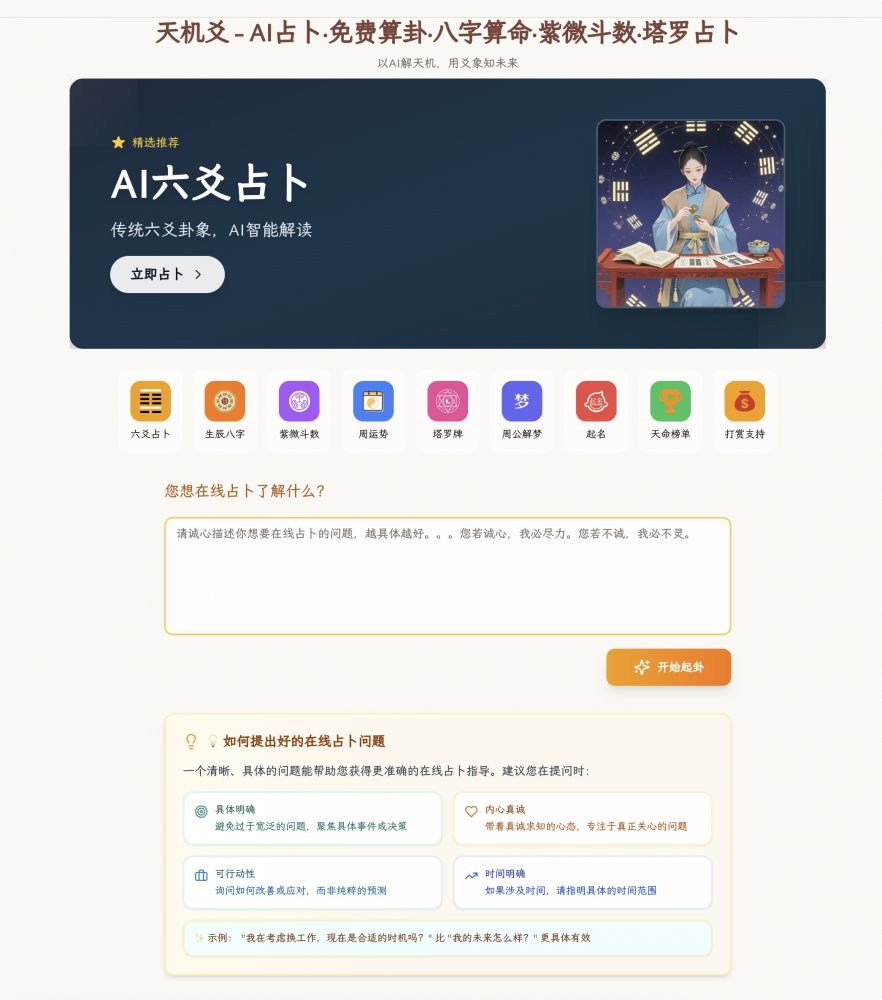 我做的这个网站——[天机爻] https://www.tianjiyao.com/