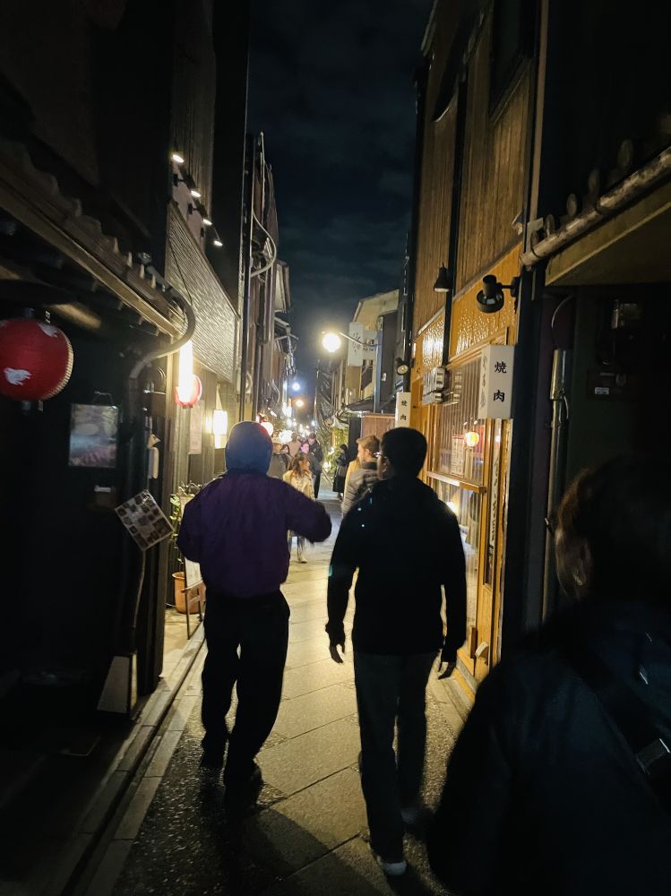 细瘦的先斗町小巷被灯火染得温暖,笑语、杯声与鸭川的风交织成一幅微醺的京都夜景。