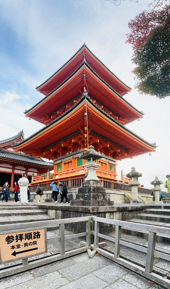 火红的枫叶向悬崖之上的清水舞台献上了季节的花束,传统木构、空间叙事与文化的隐喻,共同成就了清水寺这座日本国宝级建筑的非凡之美。