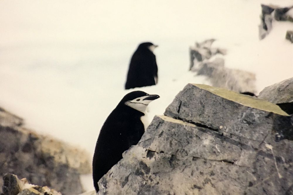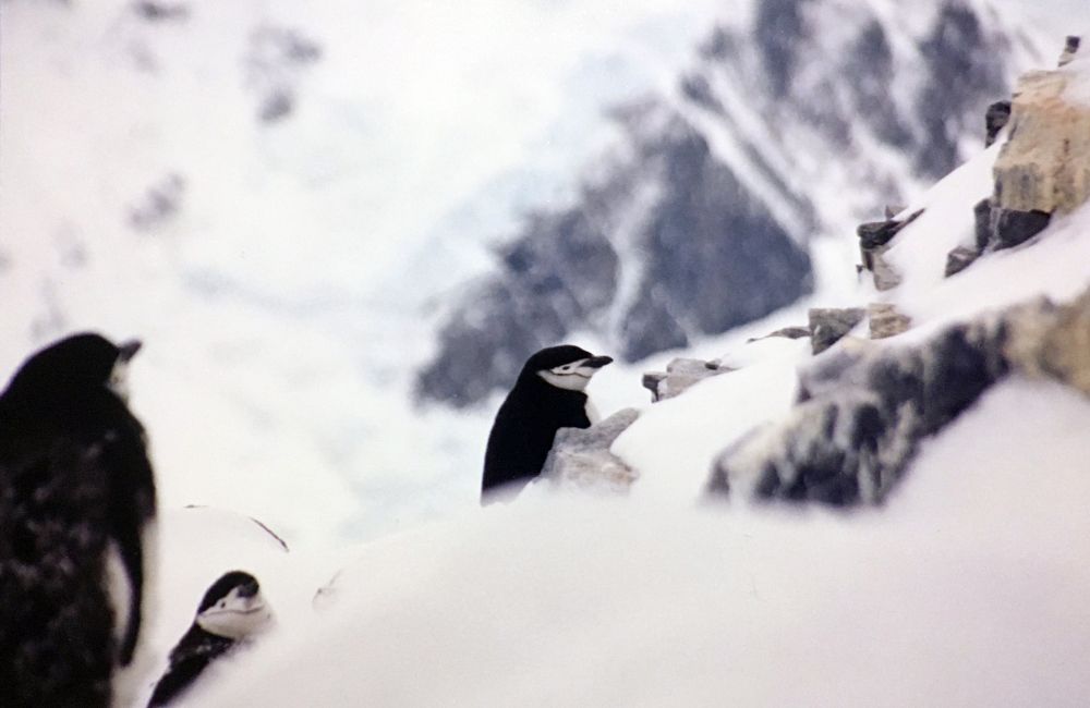 登陆后,我们一行38人沿曲折的山坡朝斯皮格特峰行进。这段路途雪厚坡陡,难度系数较大,有人四脚并用,不时停步大喘粗气。行进中看到许多帽带企鹅的巢修筑在山崖,也发现少许苔藓和地衣。