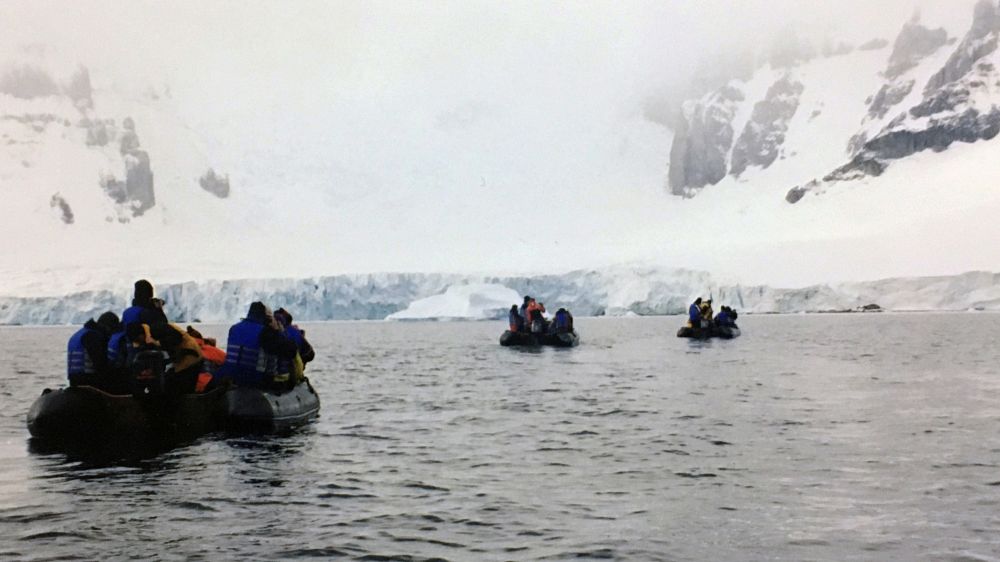 风啸雪飘,风力45到59节,Ioffe乘风驶向Wilhelmina Bay。风雪天气里无法进行巡游登陆活动,众人逐齐聚舰桥。