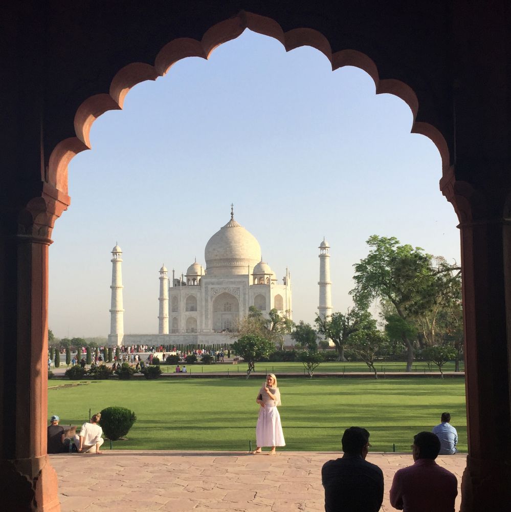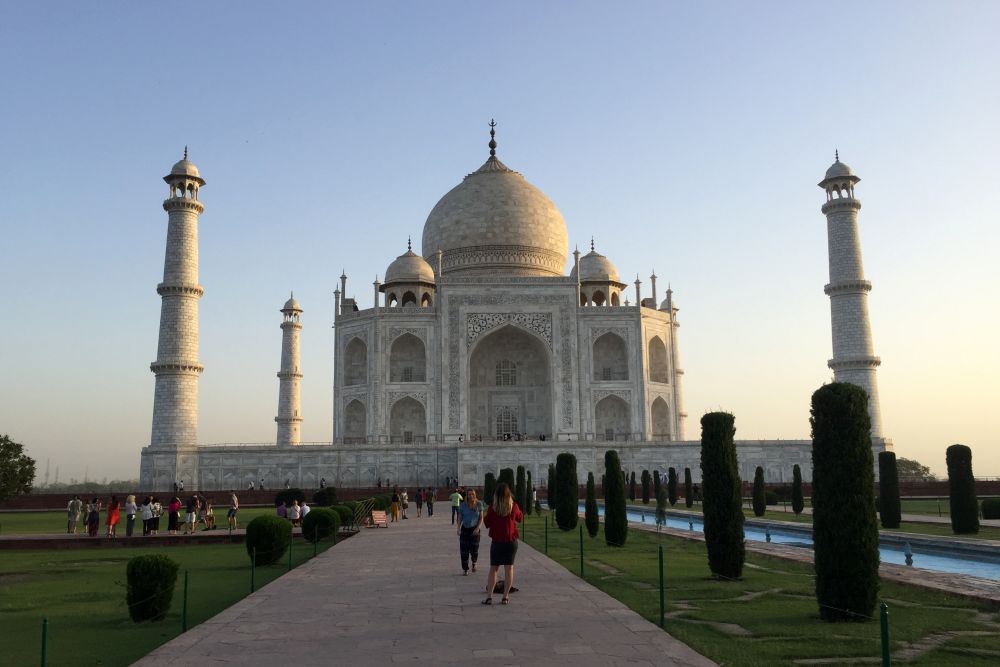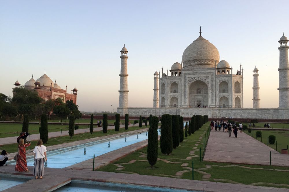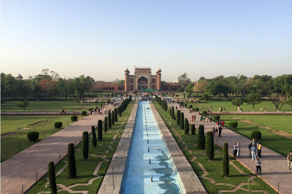 为确保一开门便可优先参观泰姬陵,我们凌晨4点起床,不到6点就进入了景区。步入拱门,穿过走廊,一眼就望见在长长的中央喷水池尽头那张印度最为出彩的名片——世界上最美丽的陵墓。