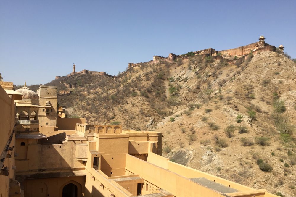 琥珀堡外部有护城河围绕,内部有地道直接通到山顶的贾格尔堡。贾格尔堡占据至高点,城堡内安置有彼时世界上最大的轮式大炮。沿山脊绵延数十公里的“印度长城”将琥珀堡、贾格尔堡以及位于附近山上的纳哈加尔堡连接,构成一个统一的、强有力的防御体系,由尚武骁勇的拉其普特人部落世代驻扎,日夜把守,築成迦普尔城的首道城防屏障。据说历代土邦王也把珍宝藏匿在这附近的山上。