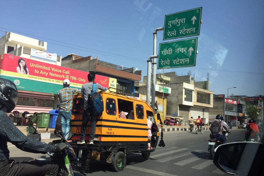 街道上疾驶的小巴酷似北美校车,许多车都没有车门。车内座无虚席,车后保险杠上还挂着两个。曾经看过叹为观止的印度火车“开挂”图片,没想到汽车也同样可以“开挂”。