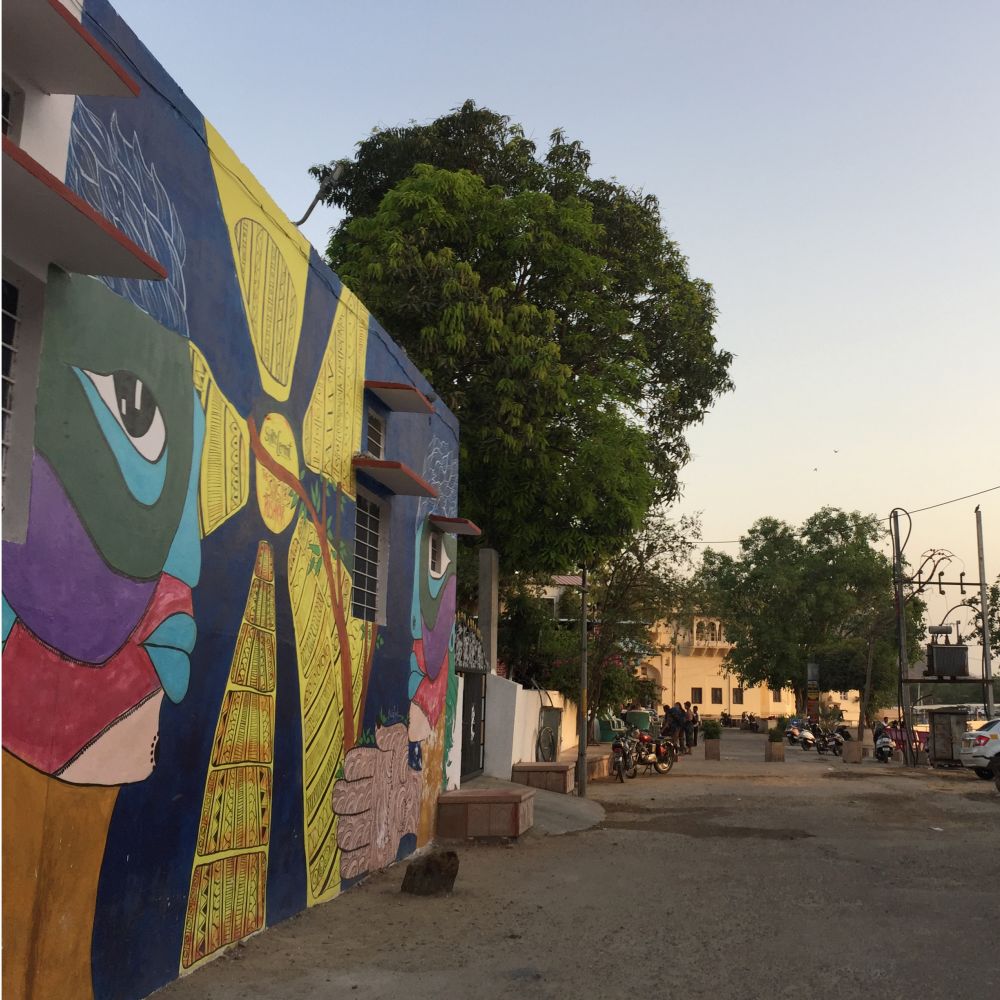 走过宫墙外的街巷,临街店铺挂满了各色宽松裤和提线木偶。神牛安逸地徘徊在狭窄巷道的正中央,卖油炸鹰嘴豆糕的推车停在神庙旁的街角,墙面大幅的彩色涂鸦,這一切都为这座粉红娇艳的城市增添一抹舒缓宁静、有人间烟火气的生活氛围。