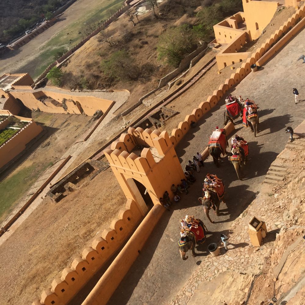 进入琥珀堡有一段长而陡峭的山路,骑大象是昔日王公贵族的传统交通工具。在印度教的信仰中,大象是由罗摩神亲手创造的神圣动物,是智慧象头神Ganesh的化身。尽管如今游客仍舊可以骑象前往,但越来越多的人選擇徒步或乘吉普车。
