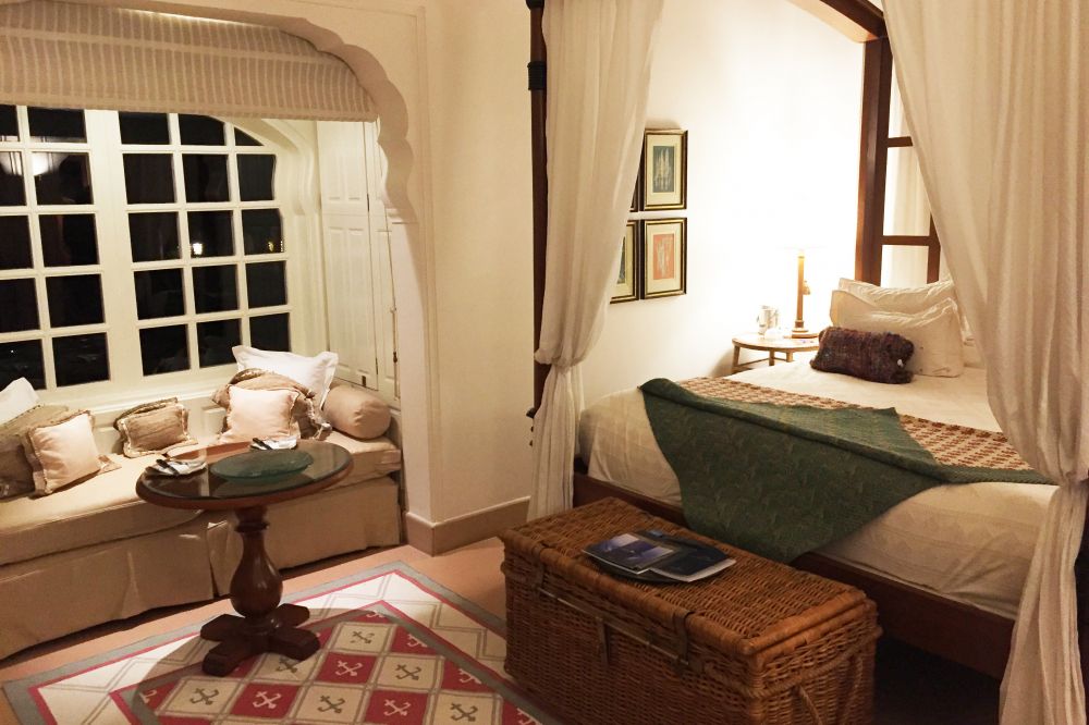 美丽的迎宾女郎为我们戴上了鲜艳的金盏花花环,按传统礼仪为女宾点上朱砂红点。湖蓝色的客房即使在炎热的夏天,也因其视觉效果带来凉爽的感觉。