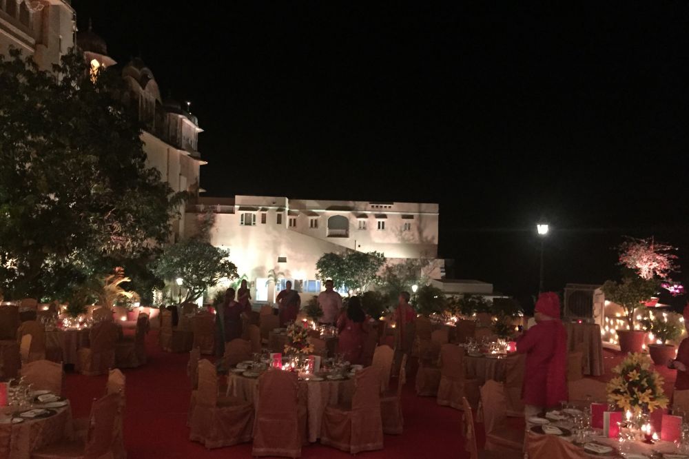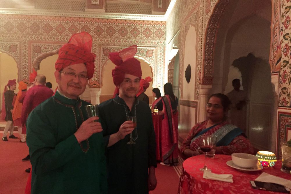 东道主为我们安排了房间,送上传统民族服装作为礼物,并安排专人帮女宾穿纱丽,帮男客缠头布。着装打扮完毕,酒会、晚宴、烟花秀次第而至,好似旧日的Maharajas在王的宫殿内廷欣赏夜宴笙歌。