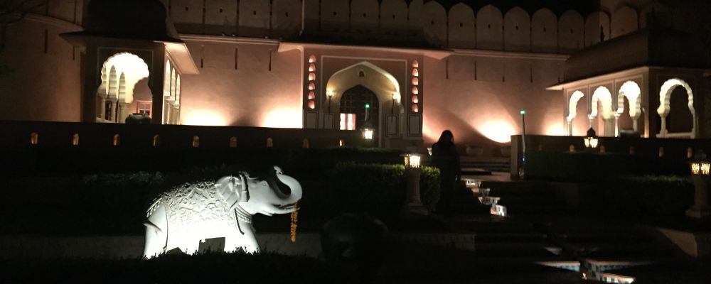 ▲Oberoi Rajvilas庭院在夜光下熠熠生辉▲