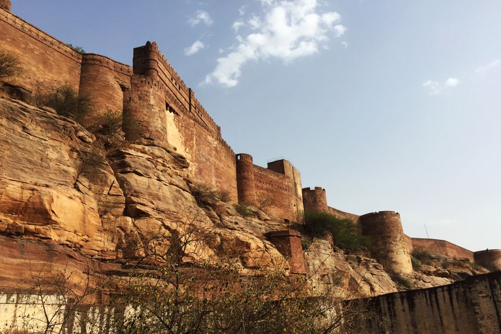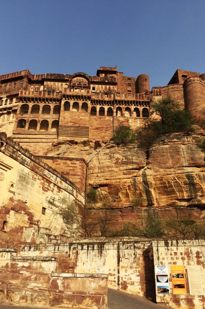 巍峨的梅赫兰加尔堡(Mehrangarh Fort)主宰着焦特布尔的天际线,无论身处城市何处,都能远远望见。它是印度最大、保存最完好的要塞之一。整座建筑屹立于高崖之上,坚硬的黄色砂岩与山体浑然一体,让人感到仿佛整座城堡是直接从山岩中雕刻而成。